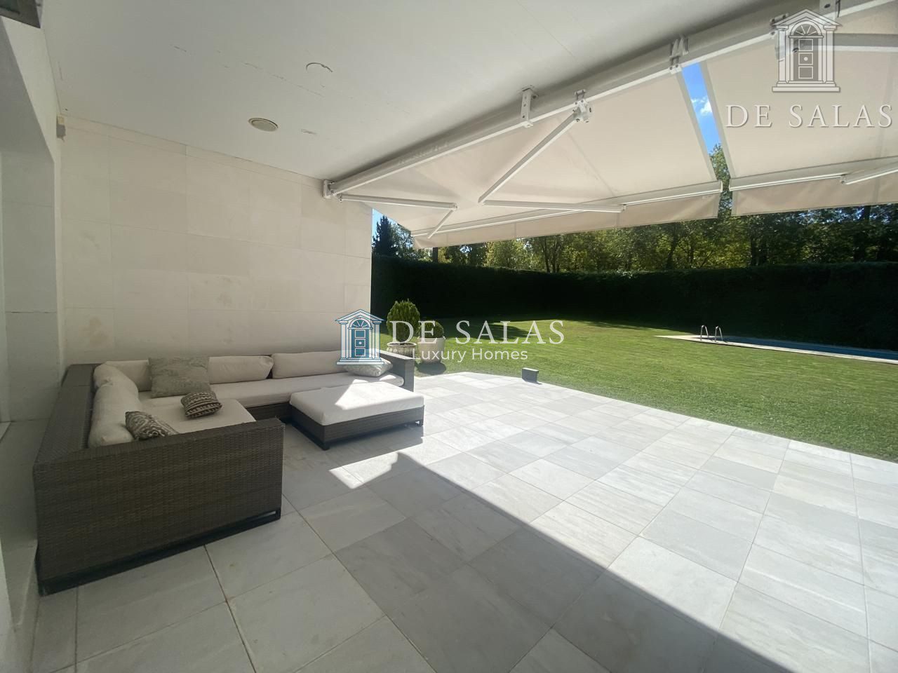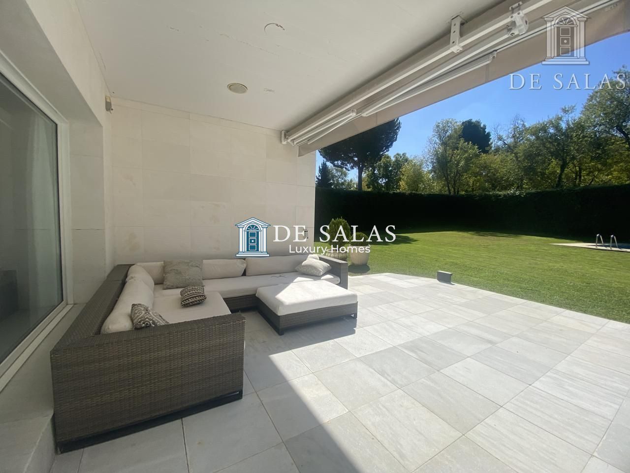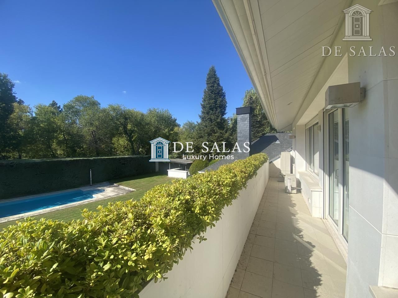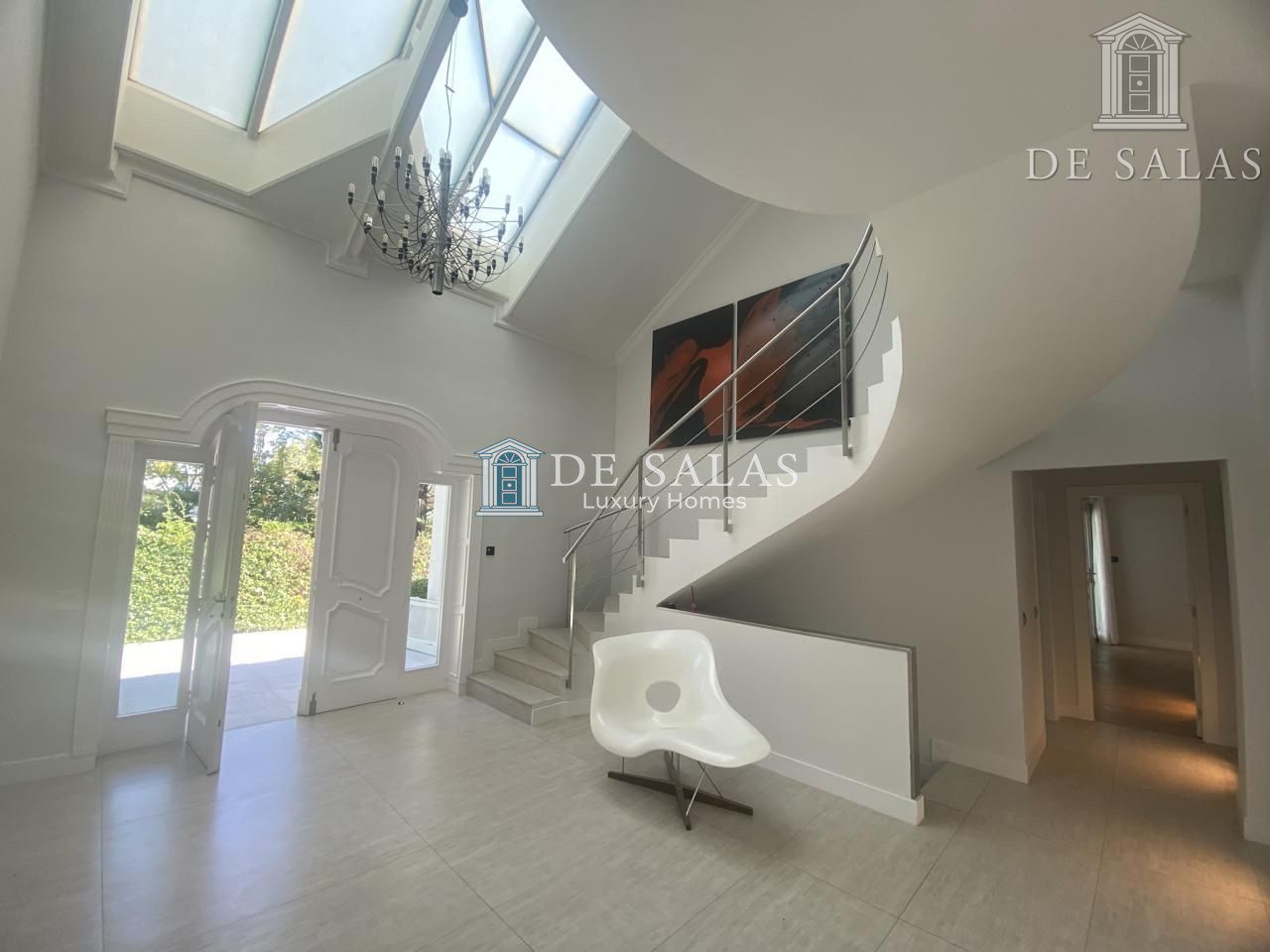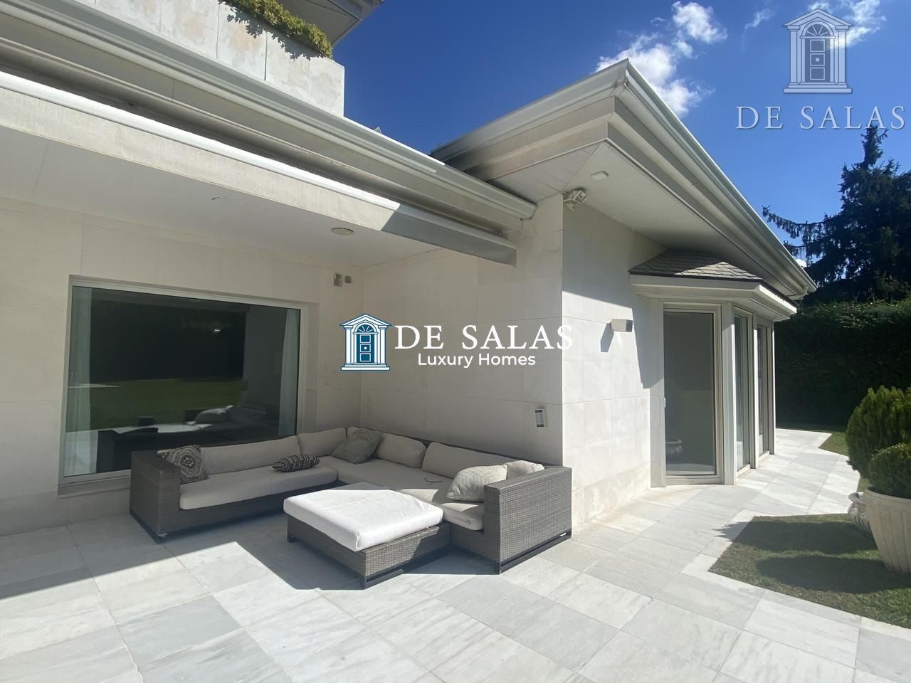 Espectacular Hall de entrada nos conduce al enorme salón, con grandes ventanales de suelo a techo, que se asoman al bonito jardín con piscina e inundan de luz la vivienda. Dispone además de un amplio comedor independiente que se comunica con la cocina y con el salón. La cocina es moderna y se encuentra amueblada, con zona de office. Tiene acceso a la zona de servicio con su propio dormitorio en suite. La zona de descanso se ubican cuatro amplios dormitorios en suite, uno de ellos tiene además un vestidor.