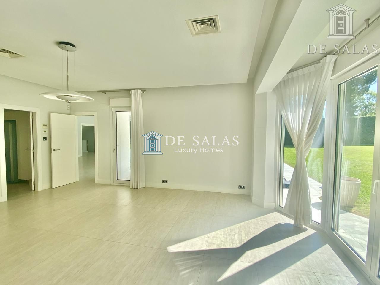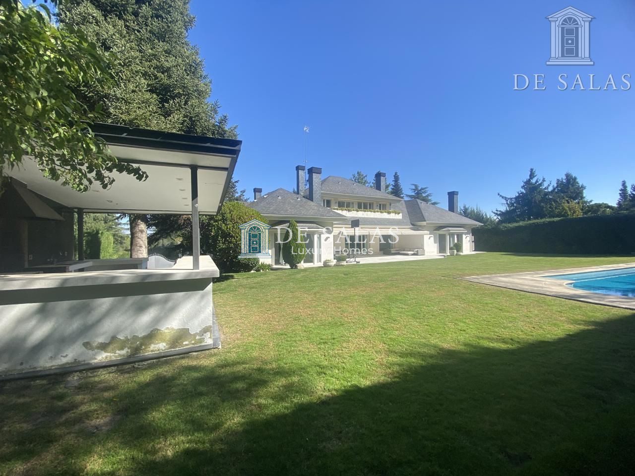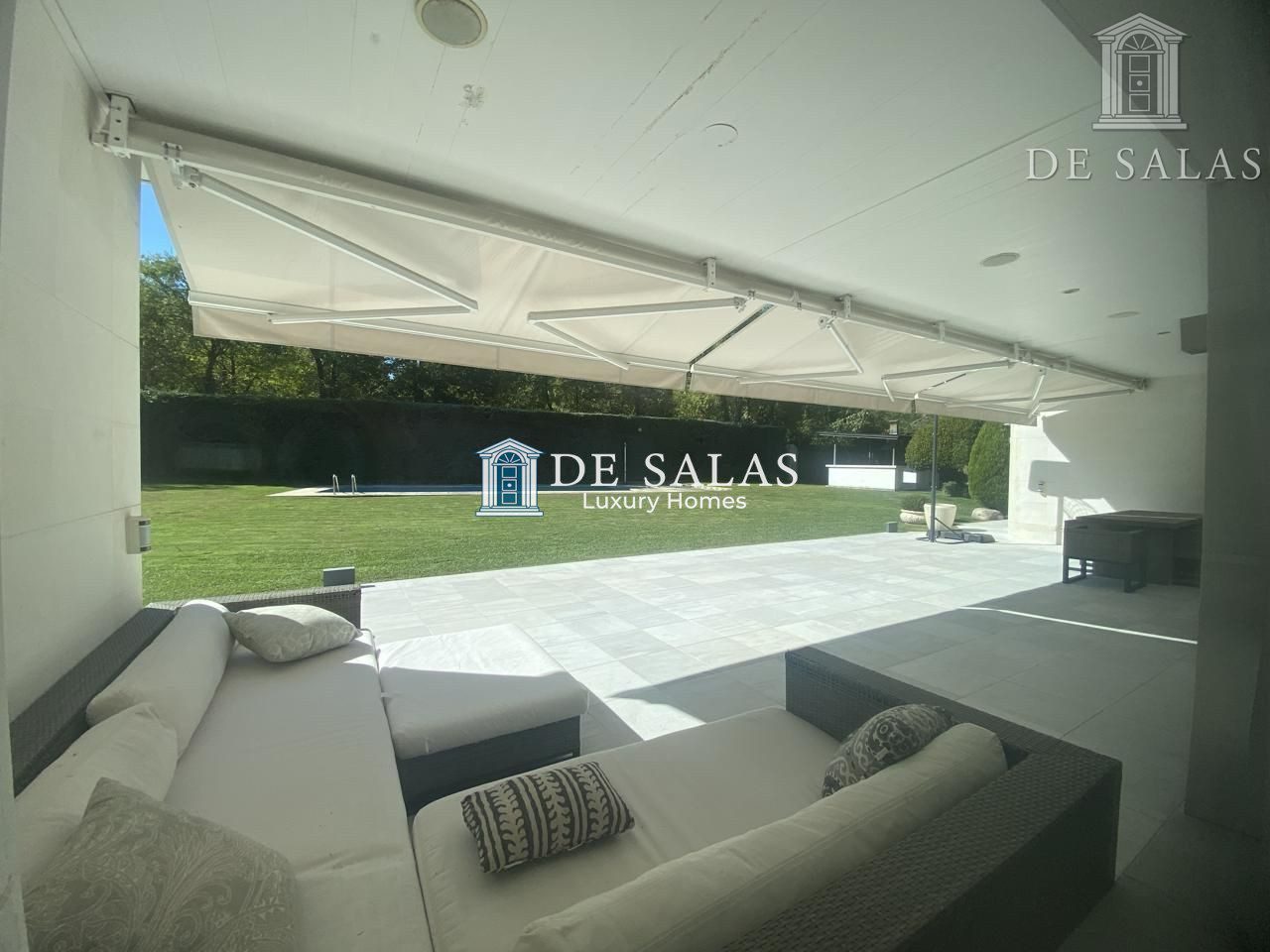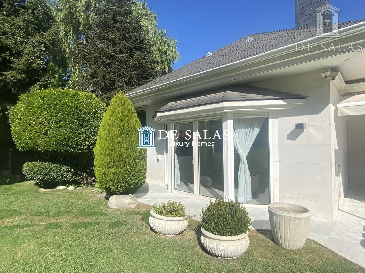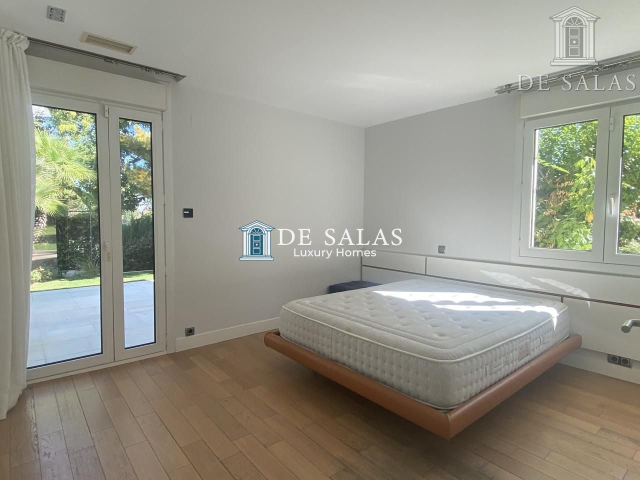 Espectacular Hall de entrada nos conduce al enorme salón, con grandes ventanales de suelo a techo, que se asoman al bonito jardín con piscina e inundan de luz la vivienda. Dispone además de un amplio comedor independiente que se comunica con la cocina y con el salón. La cocina es moderna y se encuentra amueblada, con zona de office. Tiene acceso a la zona de servicio con su propio dormitorio en suite. La zona de descanso se ubican cuatro amplios dormitorios en suite, uno de ellos tiene además un vestidor.