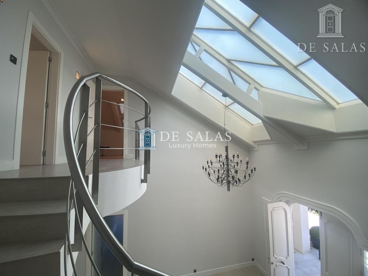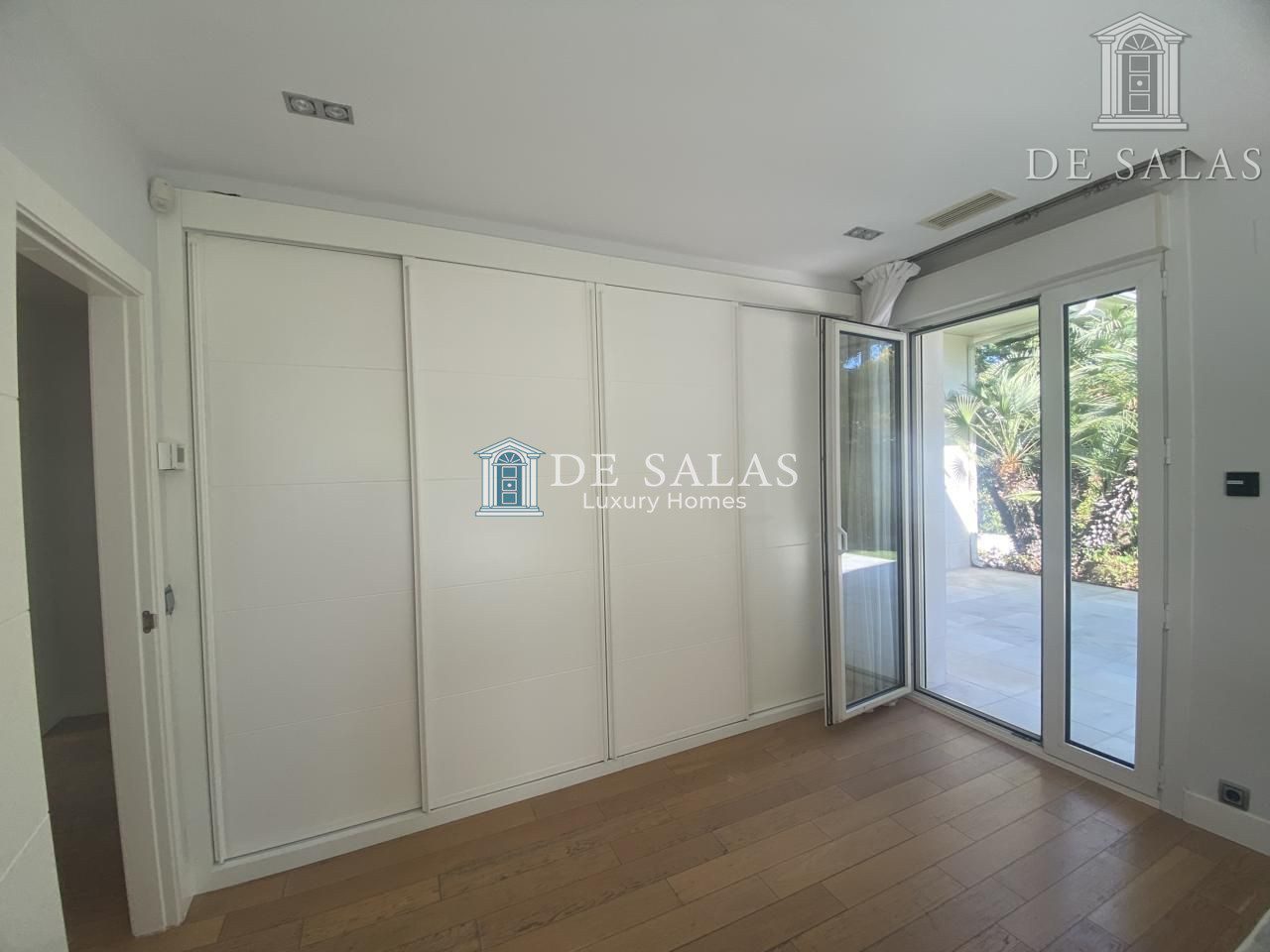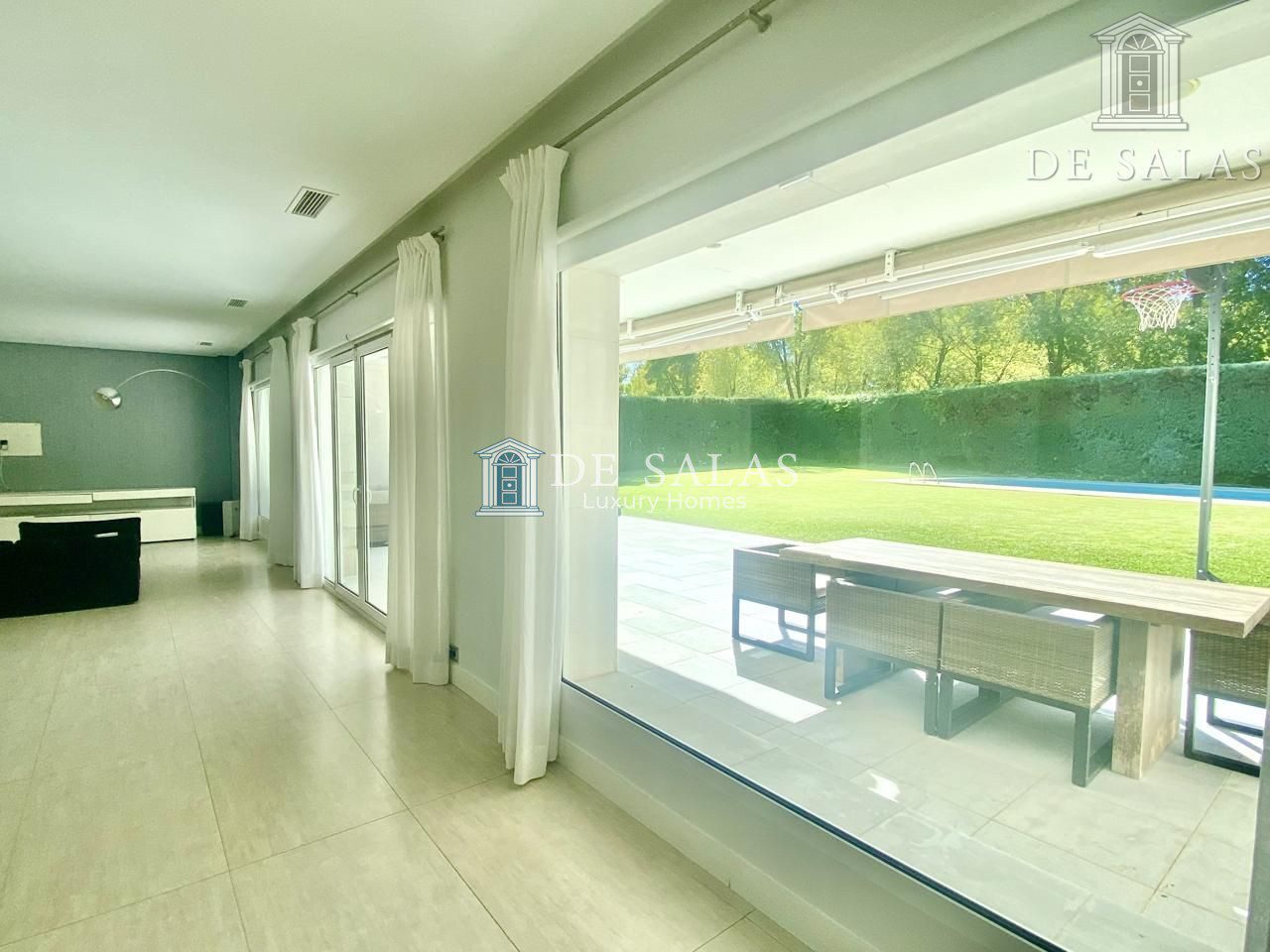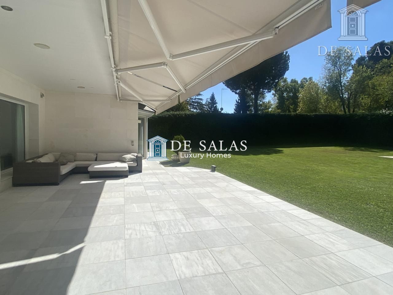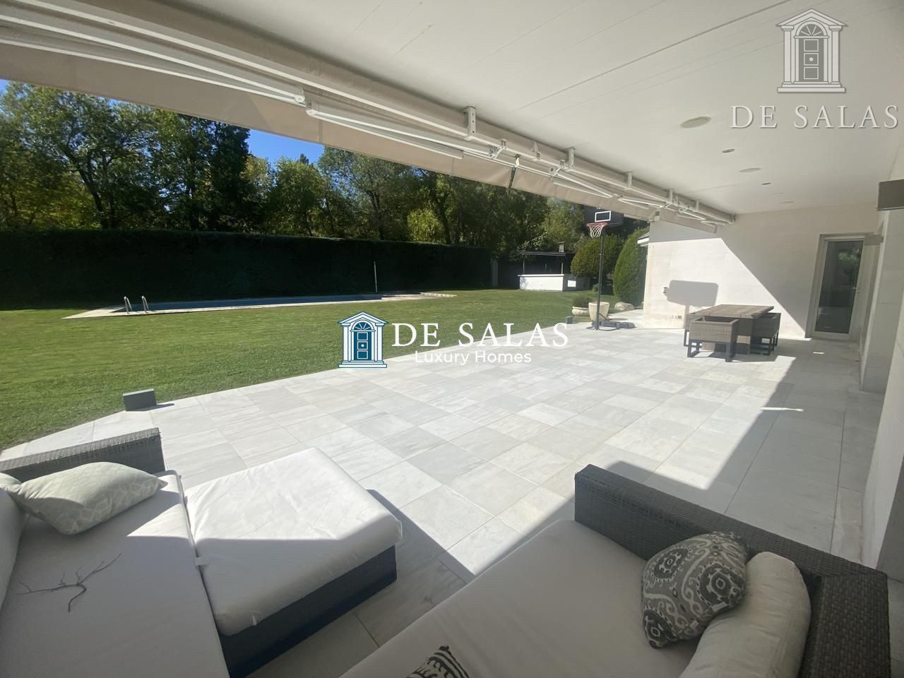 Espectacular Hall de entrada nos conduce al enorme salón, con grandes ventanales de suelo a techo, que se asoman al bonito jardín con piscina e inundan de luz la vivienda. Dispone además de un amplio comedor independiente que se comunica con la cocina y con el salón. La cocina es moderna y se encuentra amueblada, con zona de office. Tiene acceso a la zona de servicio con su propio dormitorio en suite. La zona de descanso se ubican cuatro amplios dormitorios en suite, uno de ellos tiene además un vestidor.
