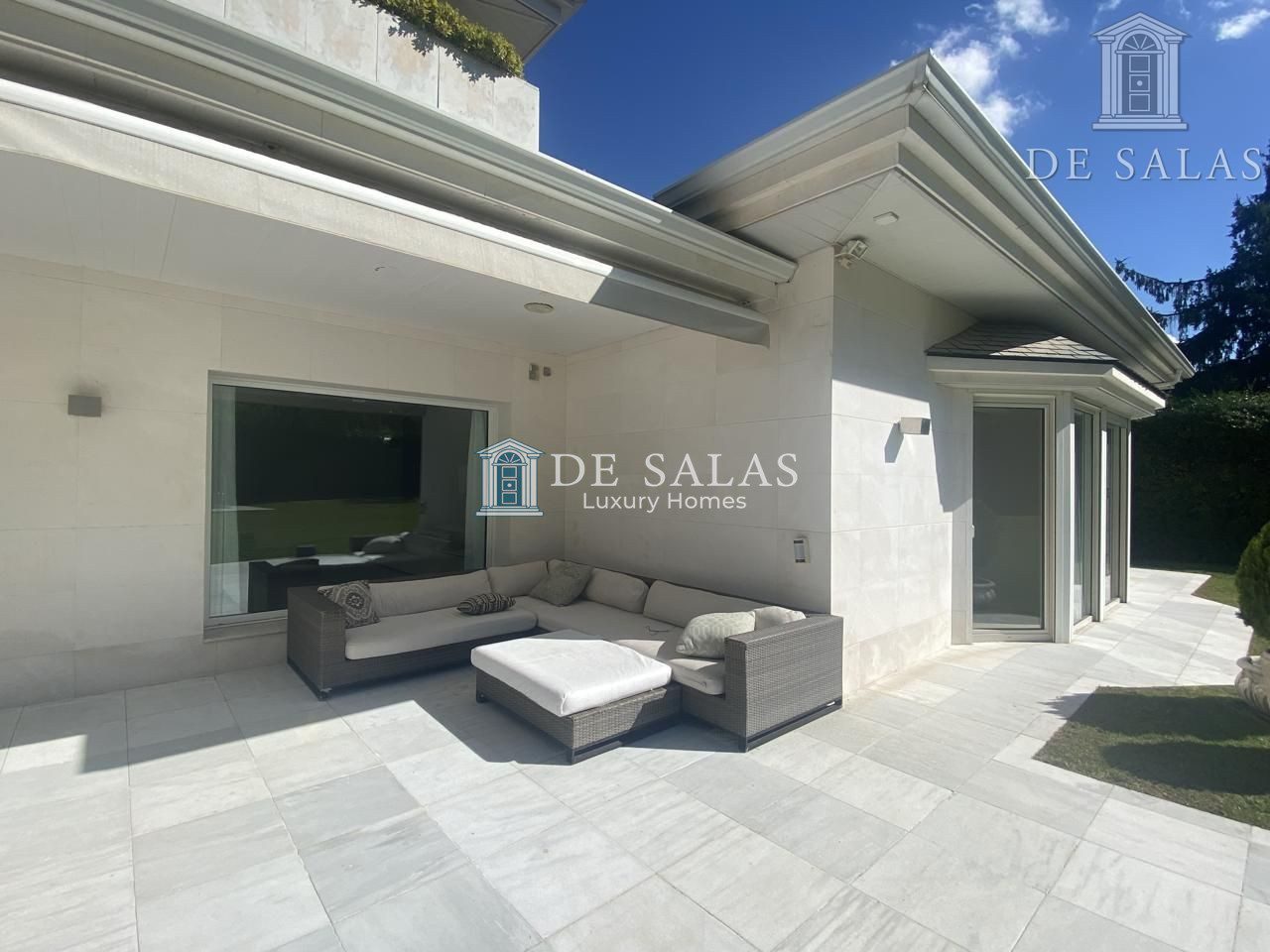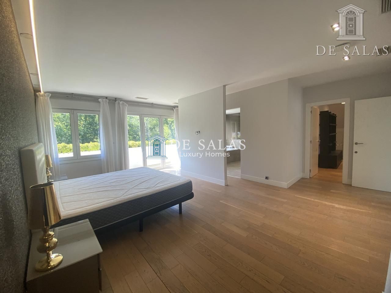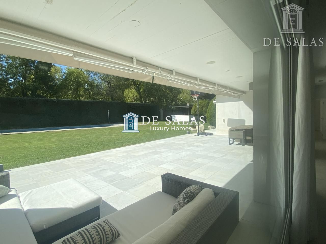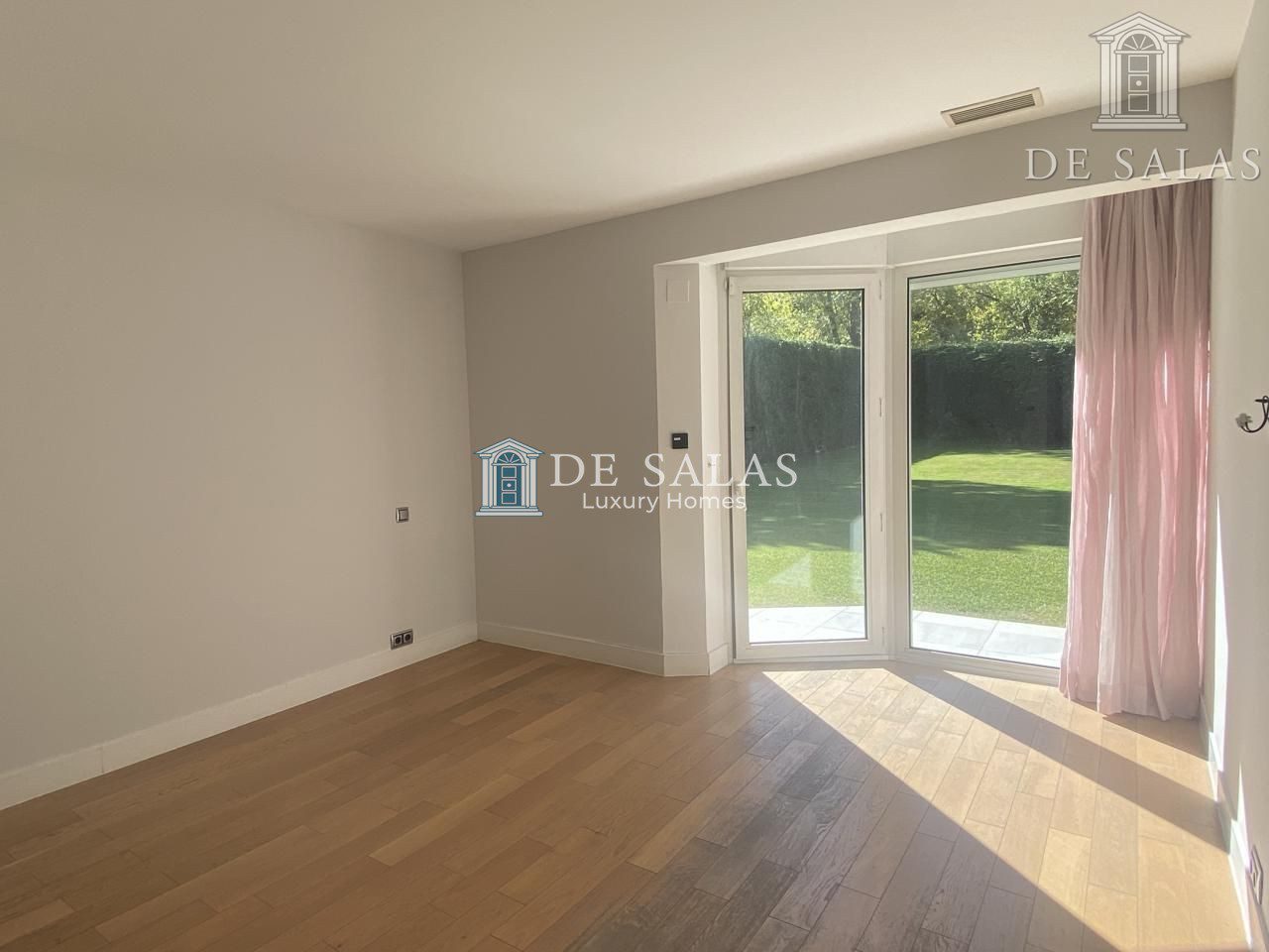 Espectacular Hall de entrada nos conduce al enorme salón, con grandes ventanales de suelo a techo, que se asoman al bonito jardín con piscina e inundan de luz la vivienda. Dispone además de un amplio comedor independiente que se comunica con la cocina y con el salón. La cocina es moderna y se encuentra amueblada, con zona de office. Tiene acceso a la zona de servicio con su propio dormitorio en suite. La zona de descanso se ubican cuatro amplios dormitorios en suite, uno de ellos tiene además un vestidor.