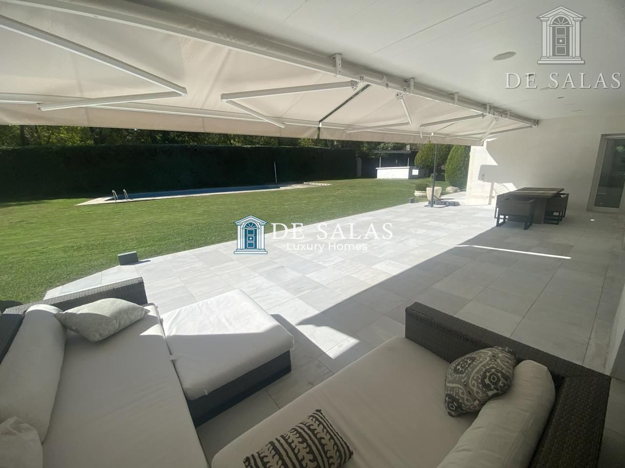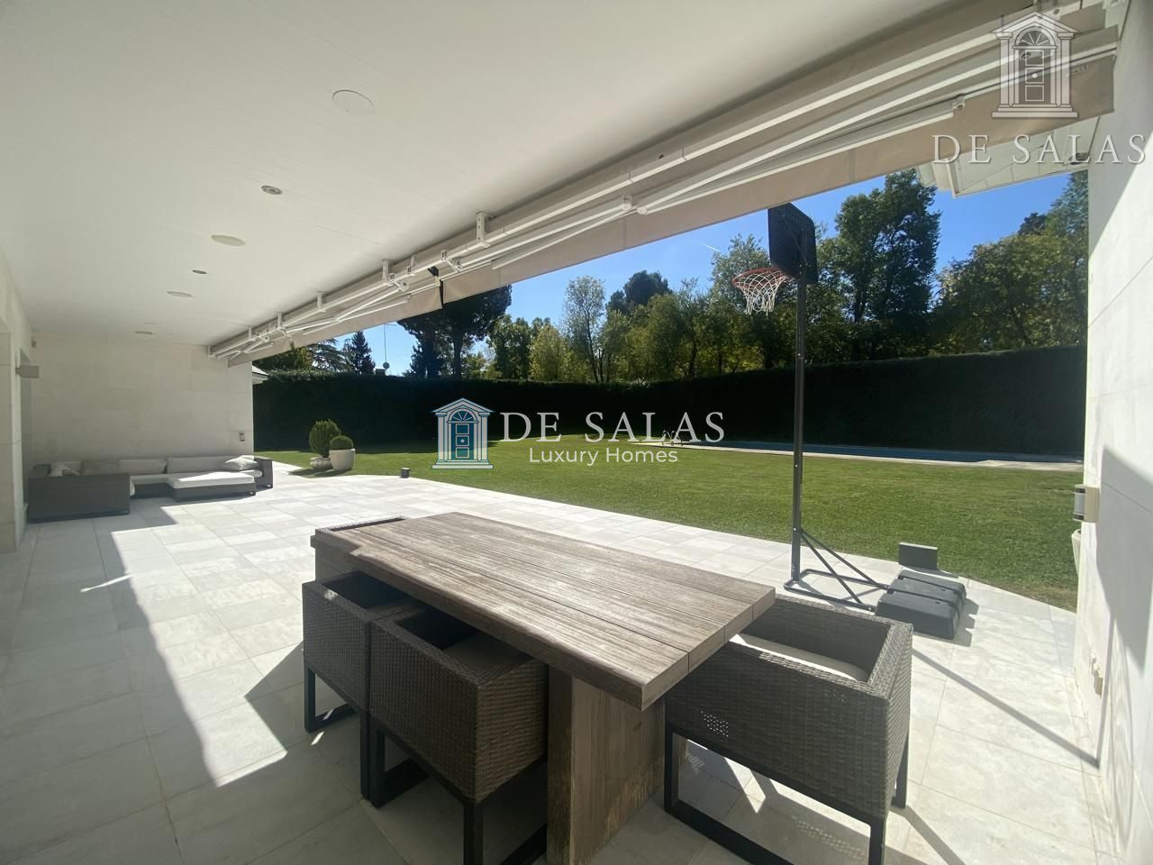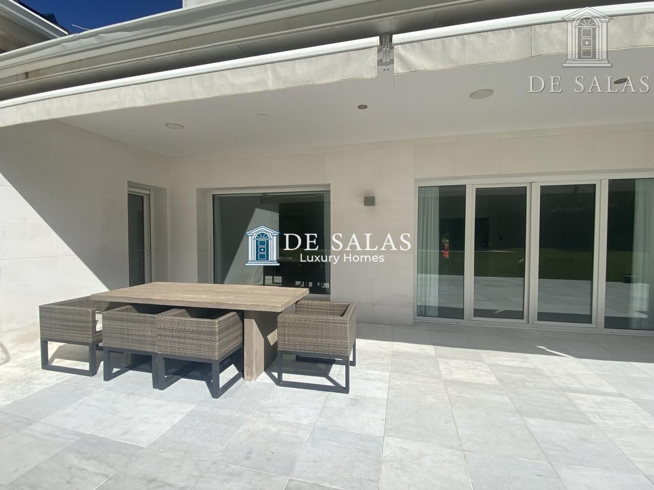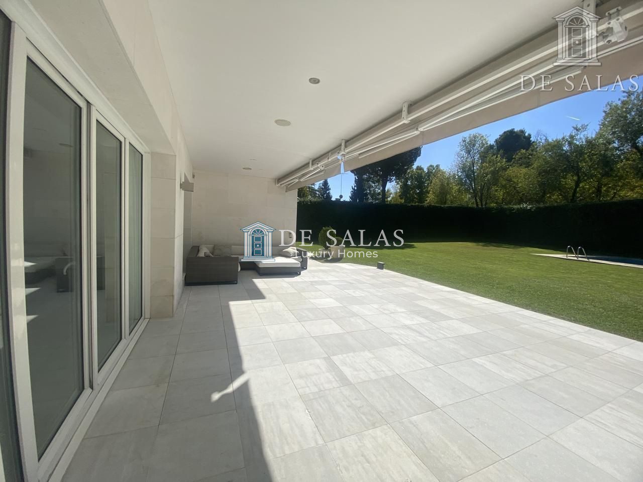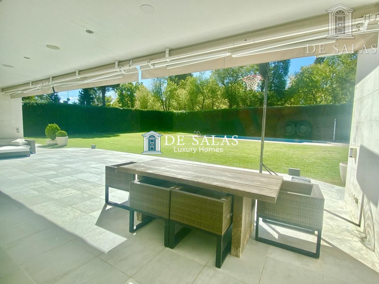 Espectacular Hall de entrada nos conduce al enorme salón, con grandes ventanales de suelo a techo, que se asoman al bonito jardín con piscina e inundan de luz la vivienda. Dispone además de un amplio comedor independiente que se comunica con la cocina y con el salón. La cocina es moderna y se encuentra amueblada, con zona de office. Tiene acceso a la zona de servicio con su propio dormitorio en suite. La zona de descanso se ubican cuatro amplios dormitorios en suite, uno de ellos tiene además un vestidor.