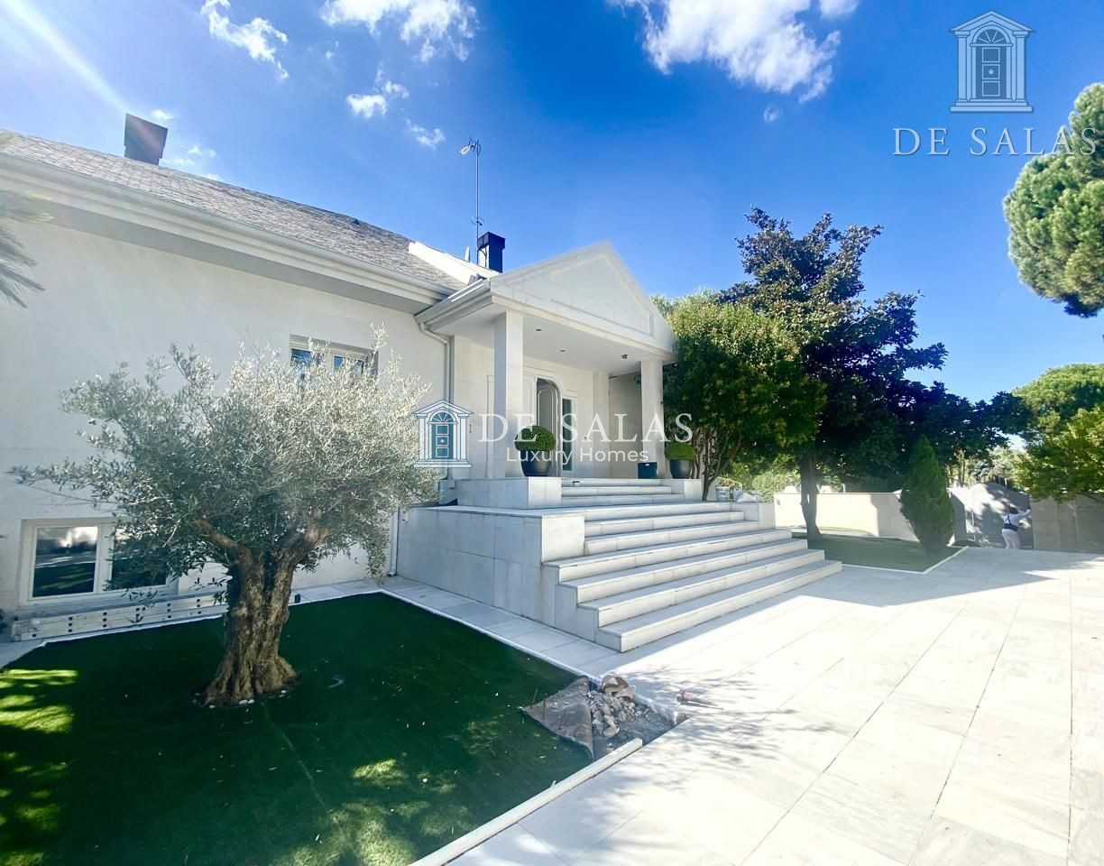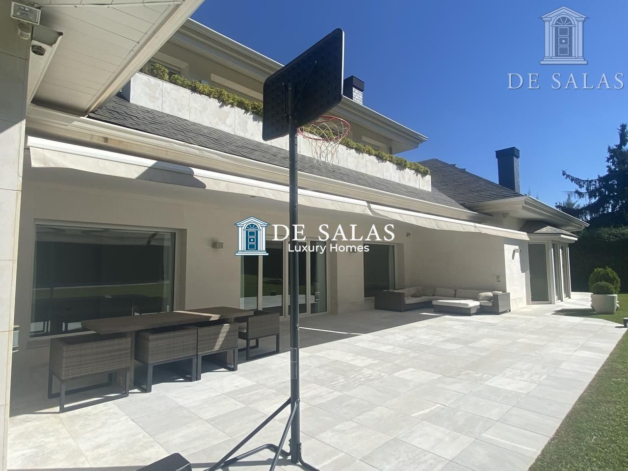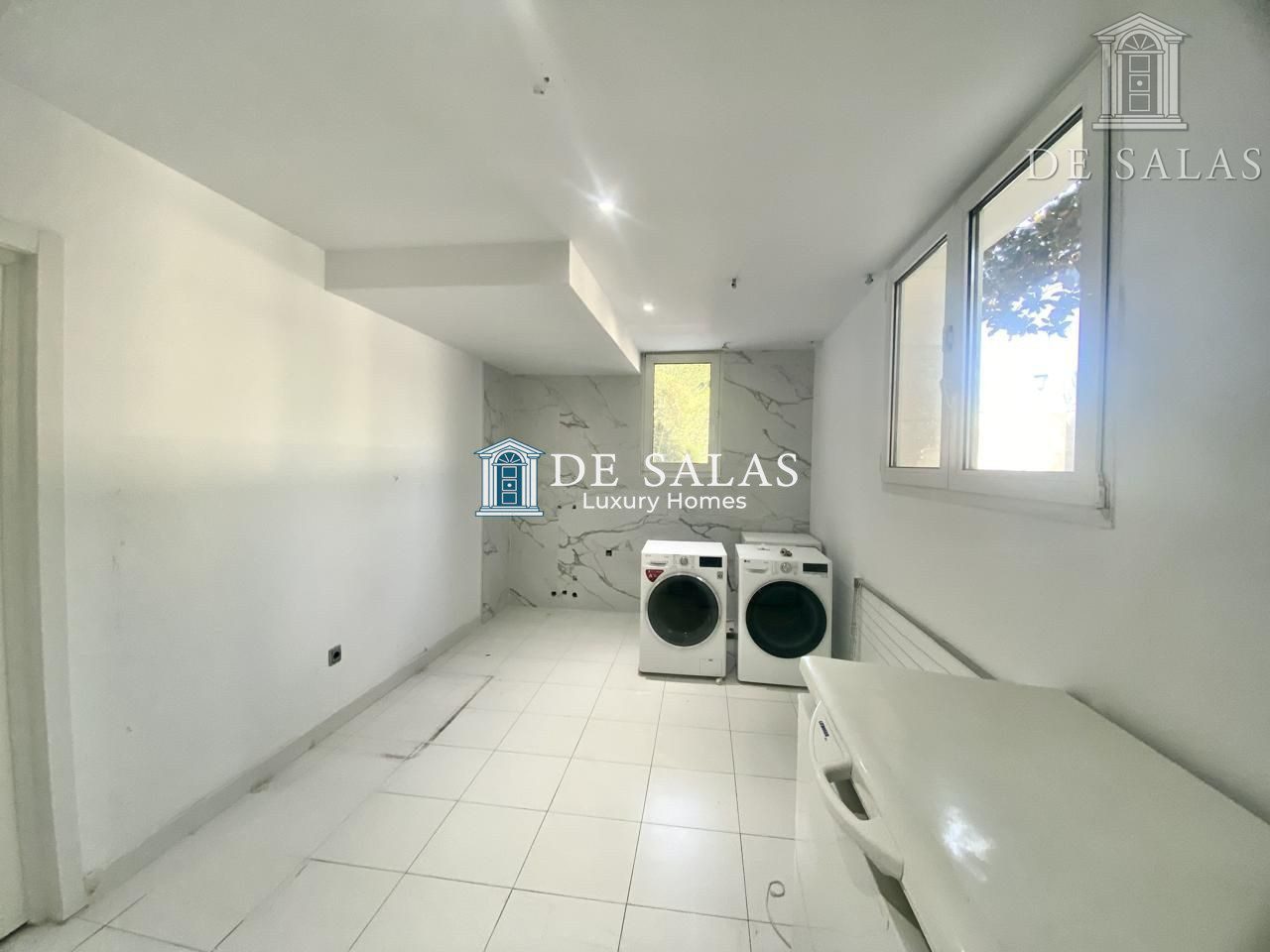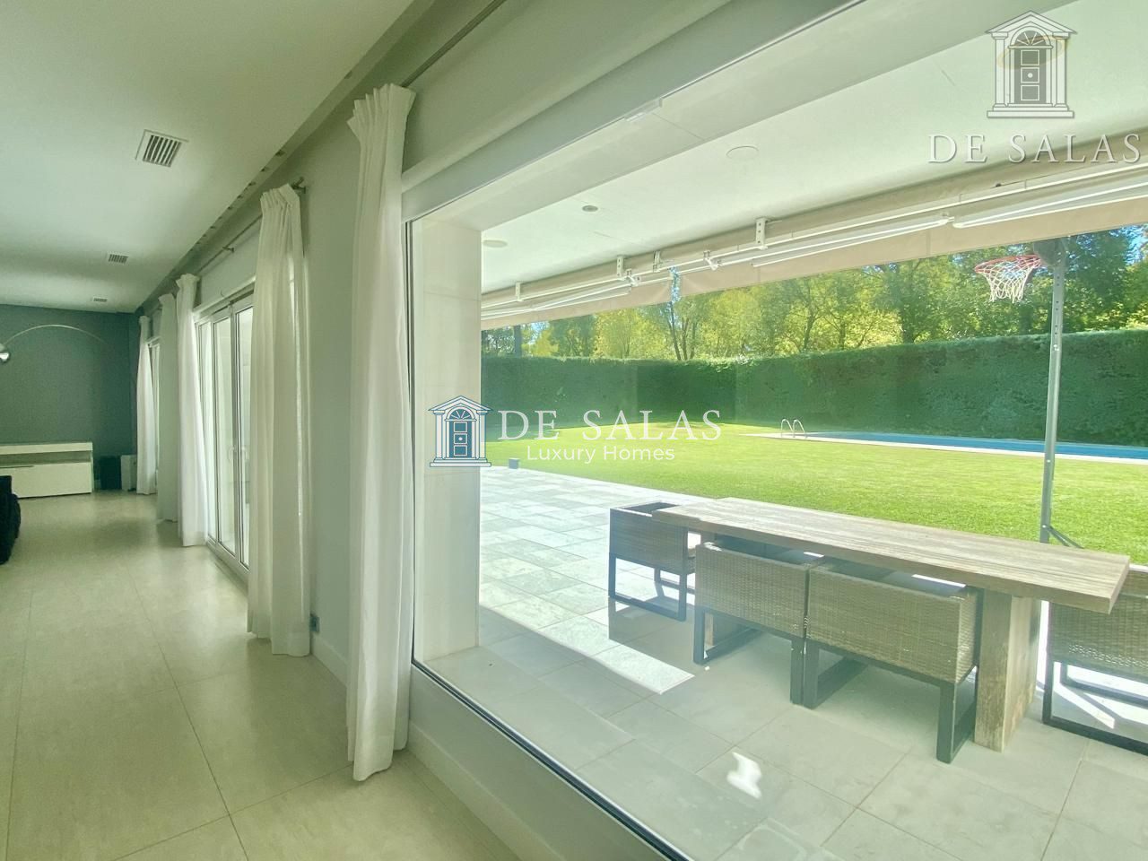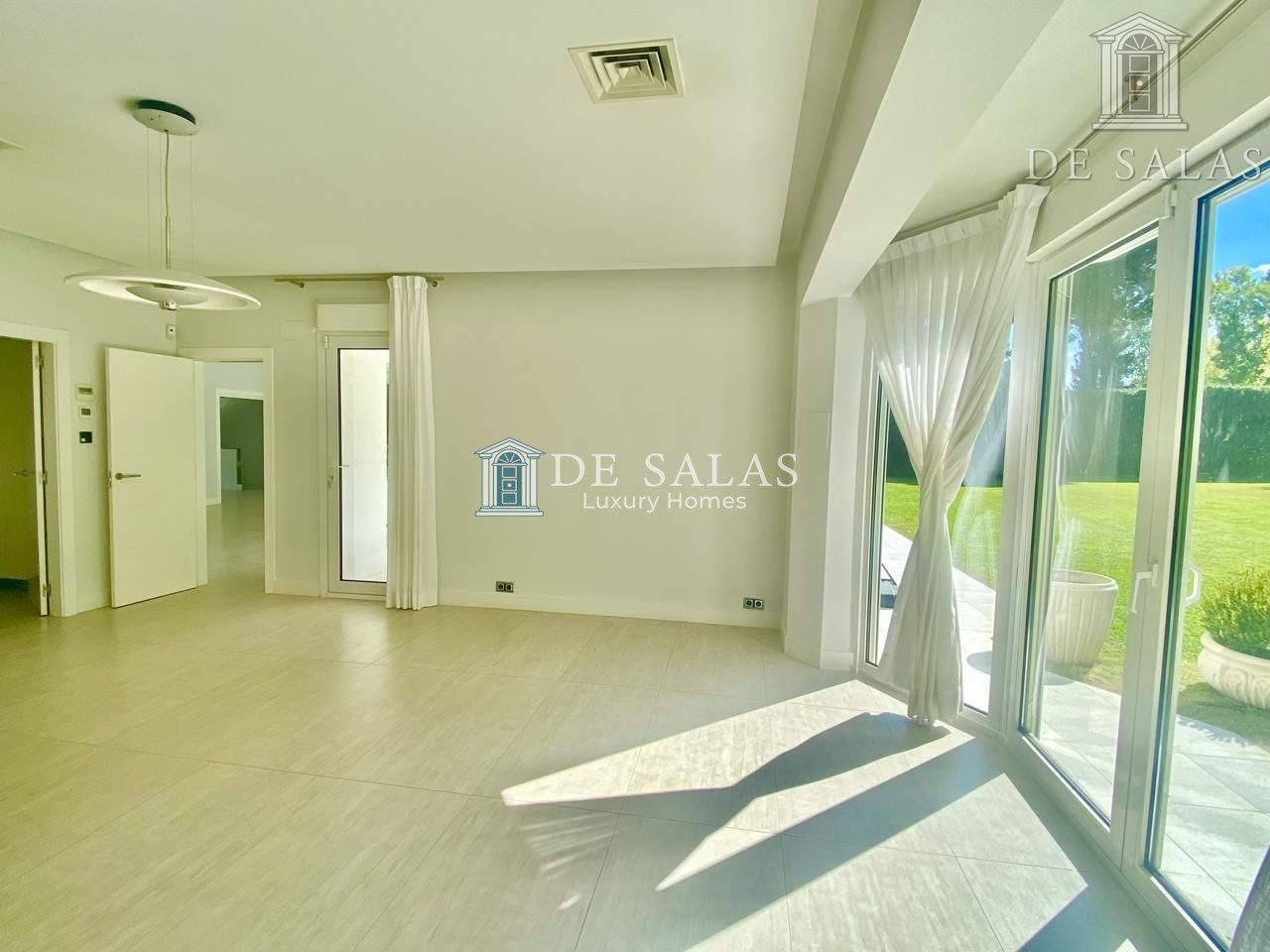 Espectacular Hall de entrada nos conduce al enorme salón, con grandes ventanales de suelo a techo, que se asoman al bonito jardín con piscina e inundan de luz la vivienda. Dispone además de un amplio comedor independiente que se comunica con la cocina y con el salón. La cocina es moderna y se encuentra amueblada, con zona de office. Tiene acceso a la zona de servicio con su propio dormitorio en suite. La zona de descanso se ubican cuatro amplios dormitorios en suite, uno de ellos tiene además un vestidor.
