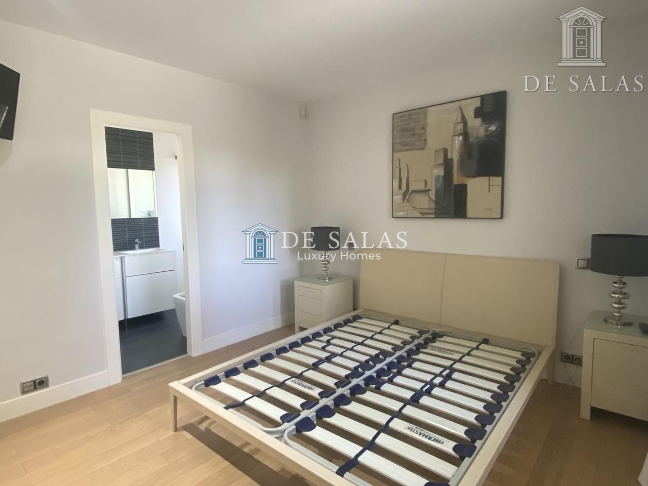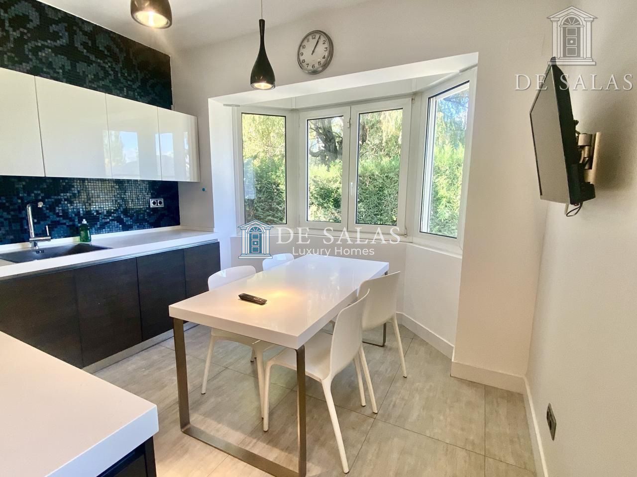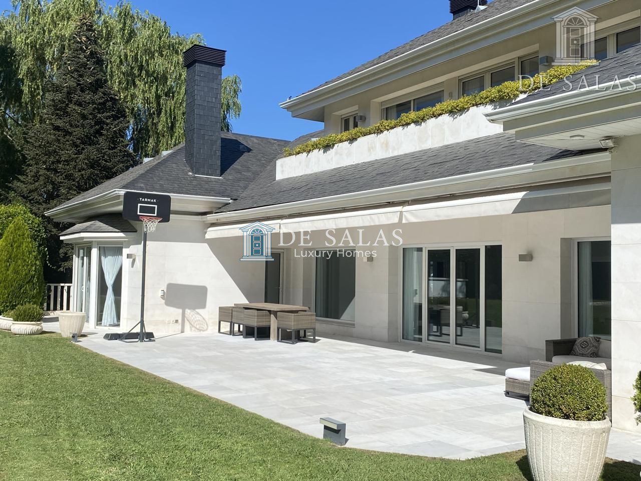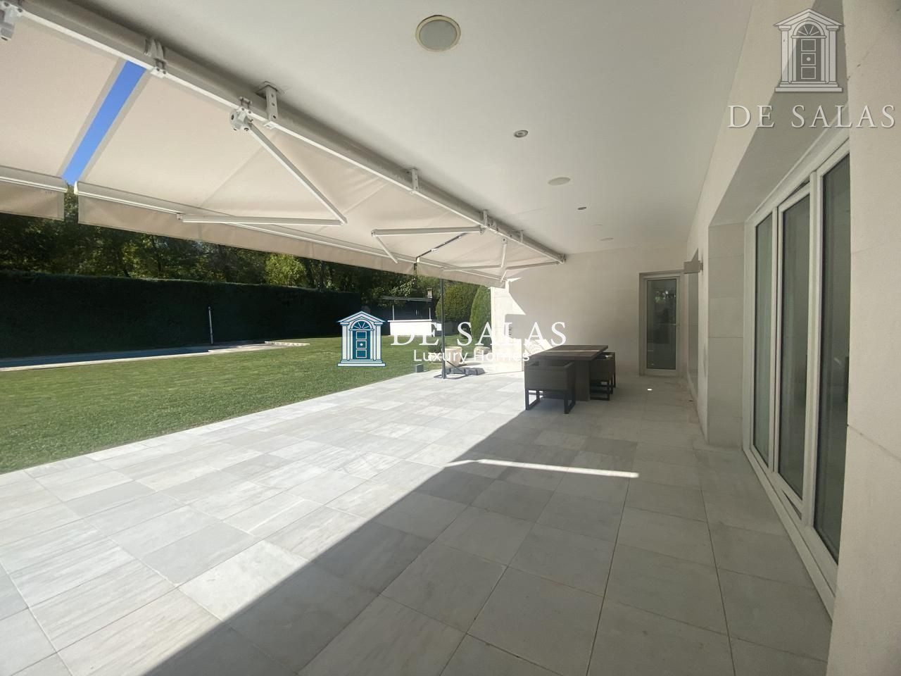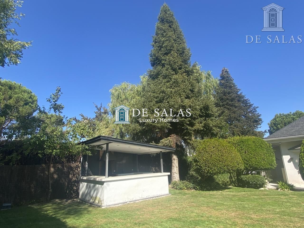 Espectacular Hall de entrada nos conduce al enorme salón, con grandes ventanales de suelo a techo, que se asoman al bonito jardín con piscina e inundan de luz la vivienda. Dispone además de un amplio comedor independiente que se comunica con la cocina y con el salón. La cocina es moderna y se encuentra amueblada, con zona de office. Tiene acceso a la zona de servicio con su propio dormitorio en suite. La zona de descanso se ubican cuatro amplios dormitorios en suite, uno de ellos tiene además un vestidor.