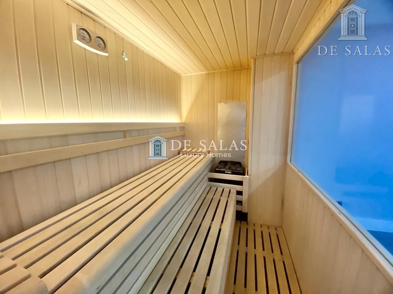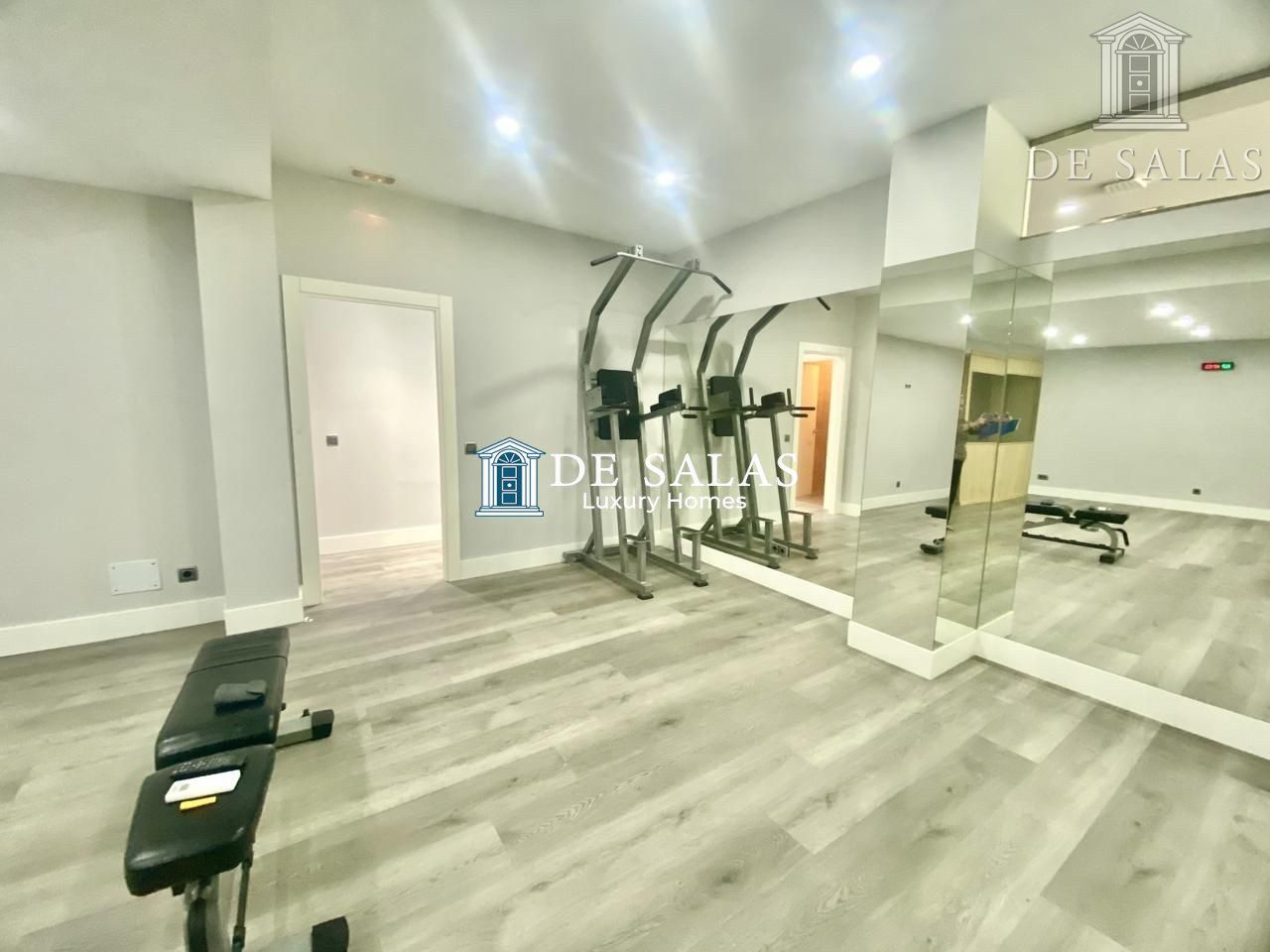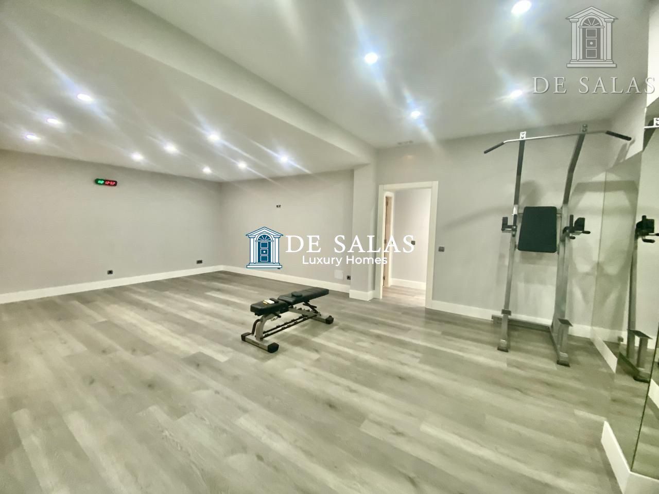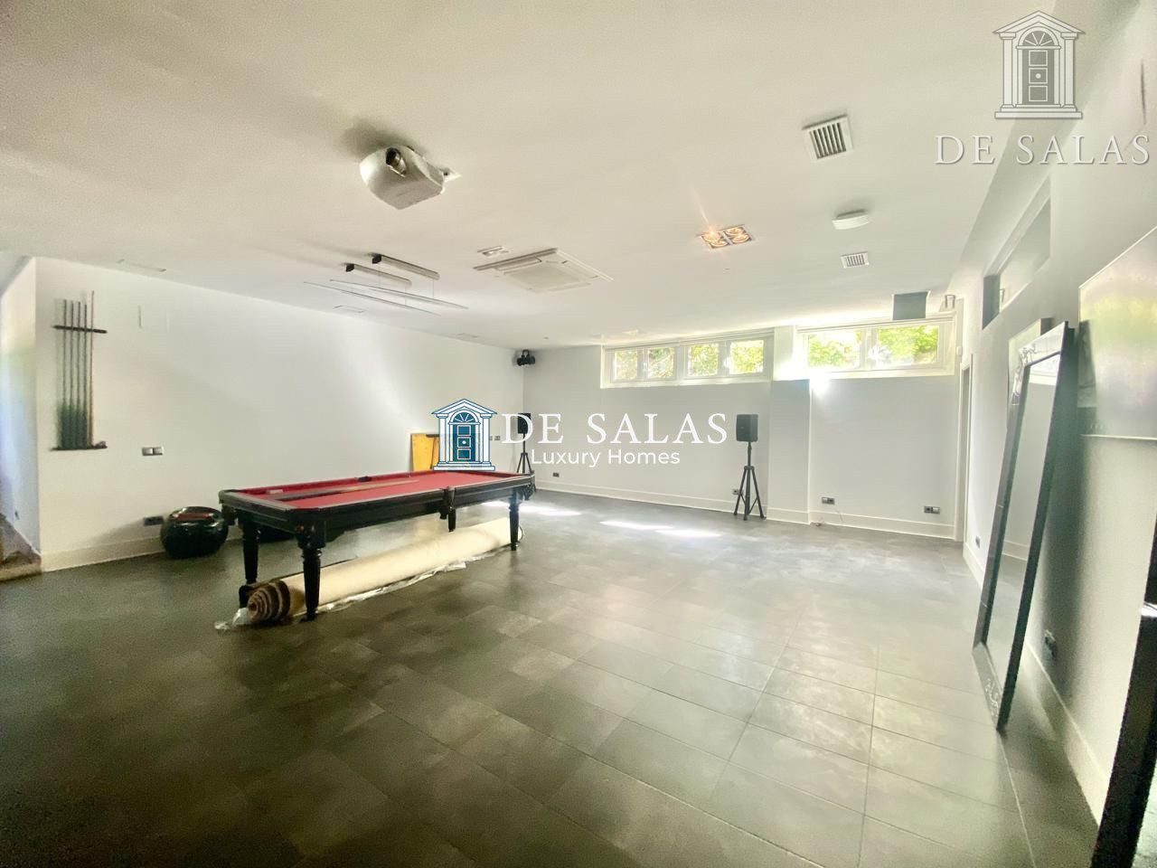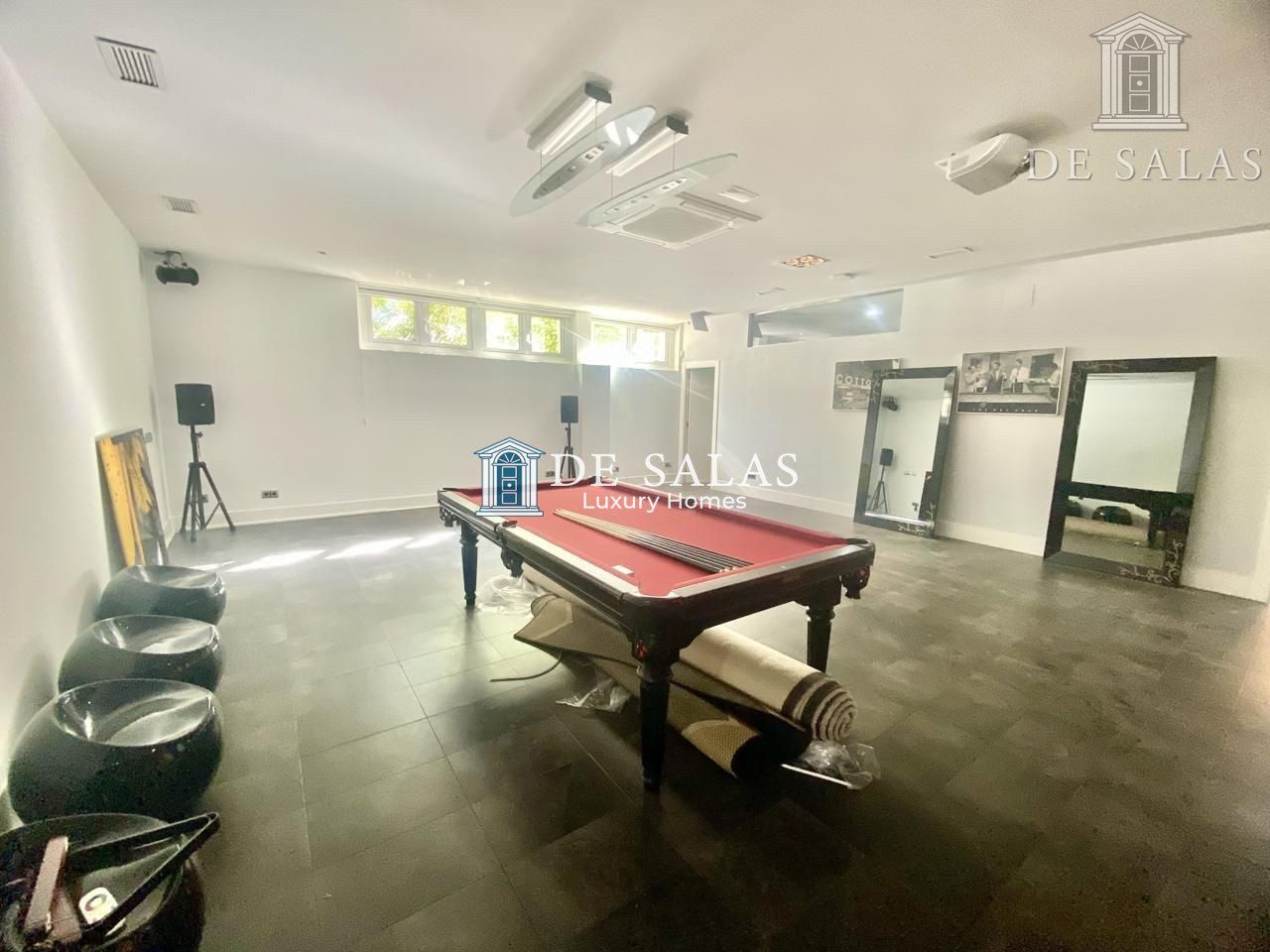 Amplia sala de juegos con mesa de billar, barra de bar, un aseo y cine con proyector. Gran gimnasio con su propio baño y una sauna con ducha. Cuarto trastero y un enorme garaje para cuatro coches.