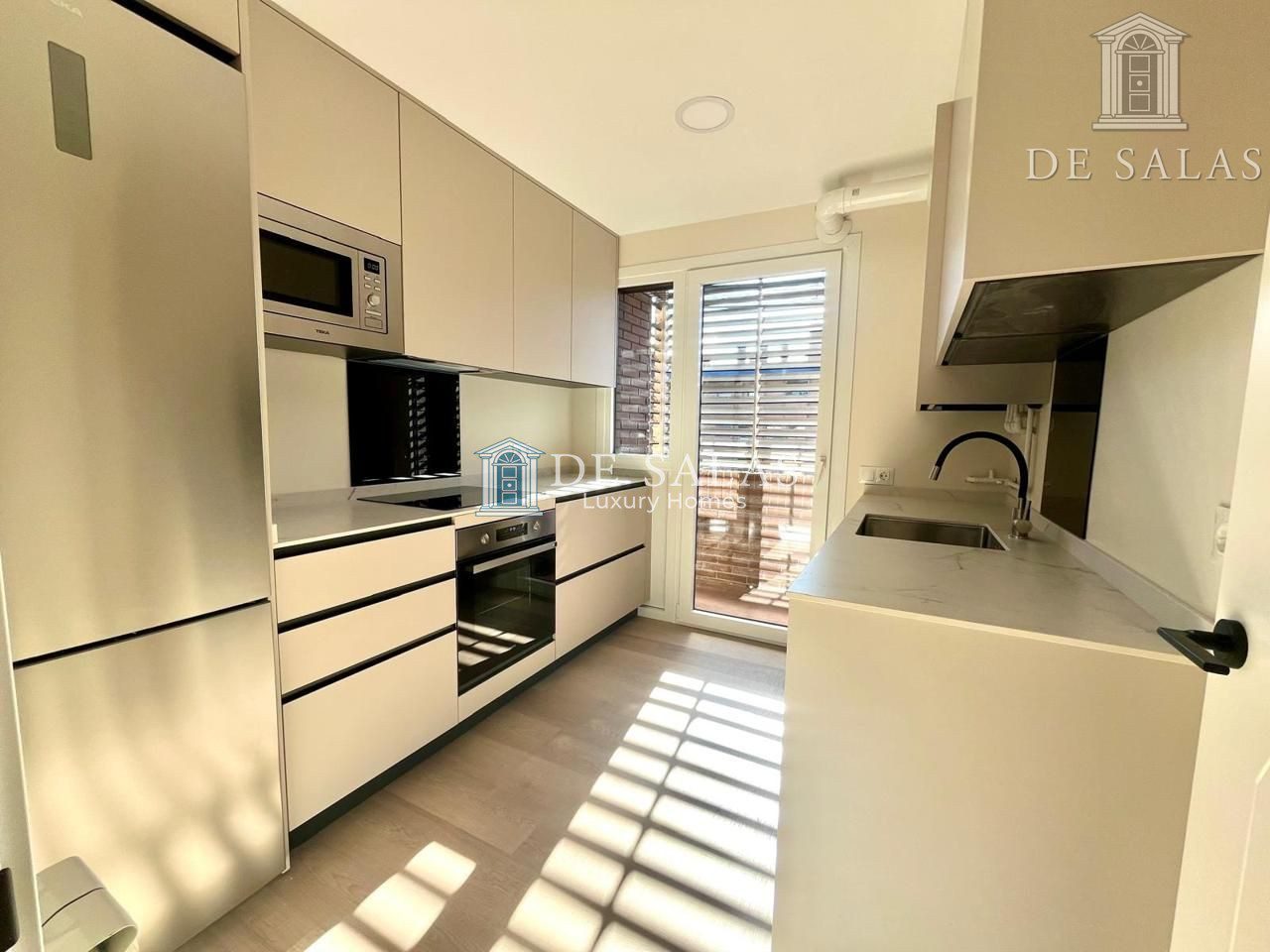 El ático se completa con cuatro dormitorios y dos baños. La cocina se encuentra totalmente amueblada y equipada con electrodomésticos, e incluye una práctica terraza lavadero.