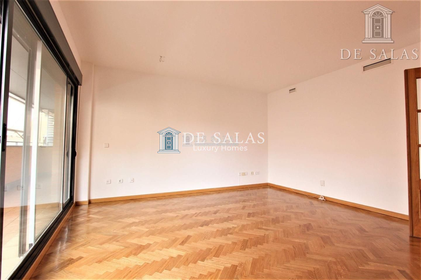 Frente al salón se sitúa el primer baño completo con bañera. Una puerta separa el pasillo y da paso a la zona de descanso. Aquí encontramos una habitación sencilla con armario empotrado de dos cuerpos y, al fondo, la suite principal que destaca por su zona de vestidor y un baño completo con bañera. Ambas habitaciones son exteriores, con ventanas que dan a la terraza.