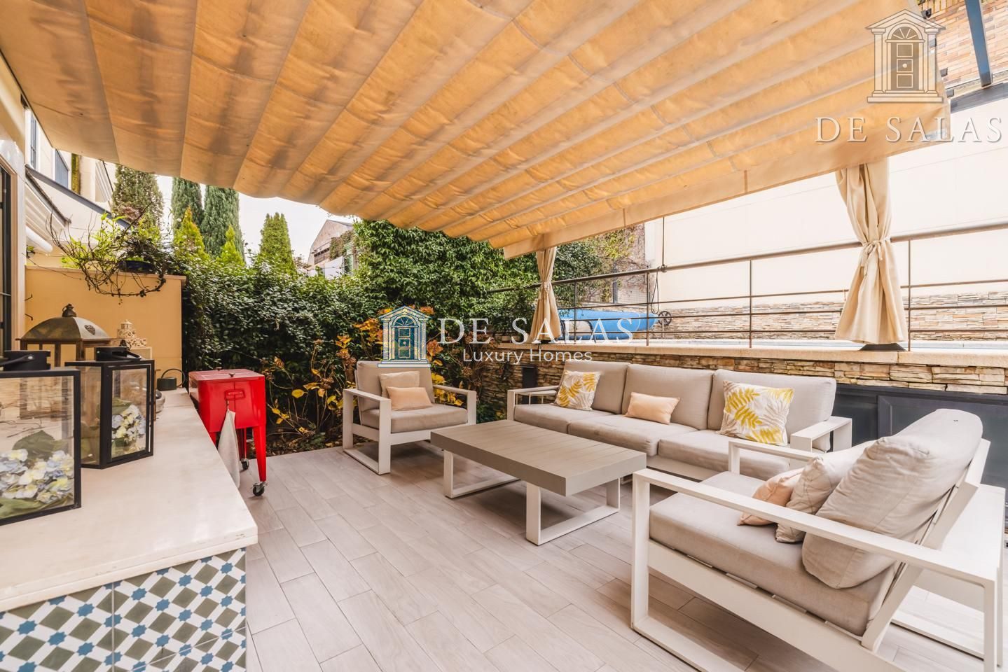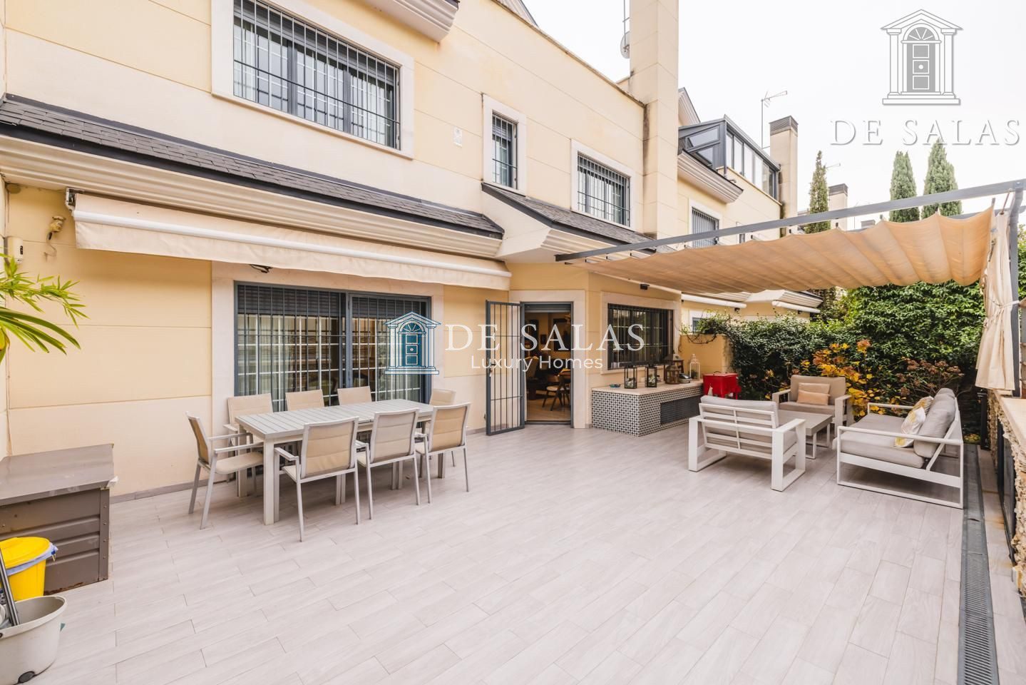 DE SALAS LUXURY HOMES Ref. MAV02891, presenta este impresionante chalet adosado de estilo clásico que destaca por su ubicación, muy cerca del Palacio de Hielo y el Liceo francés. Sin duda, nos encontramos ante un hogar diseñado para quienes buscan excelencia, privacidad y una calidad de vida inigualable.