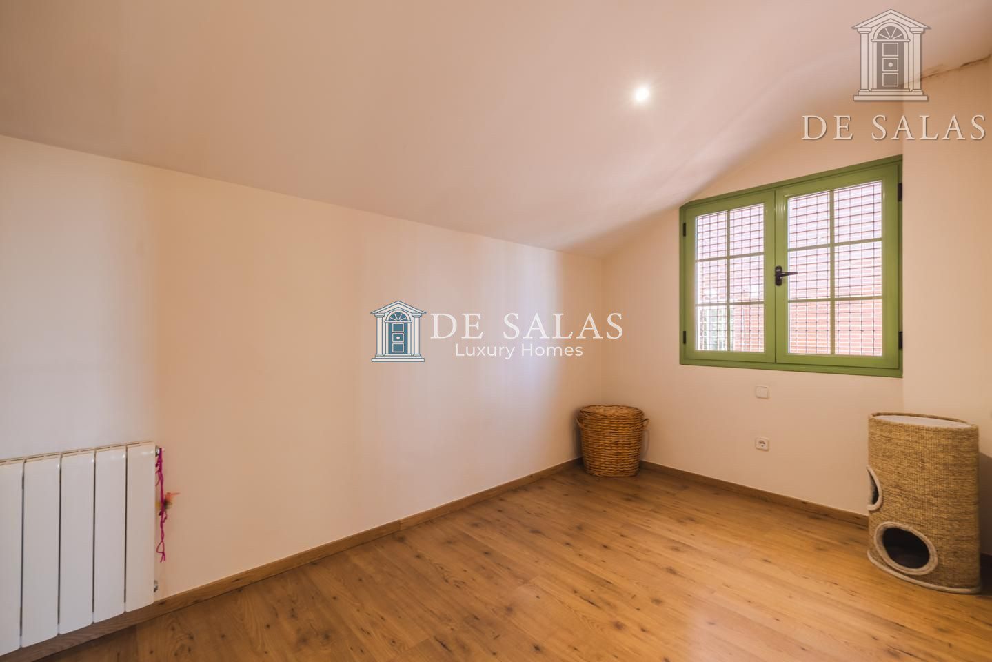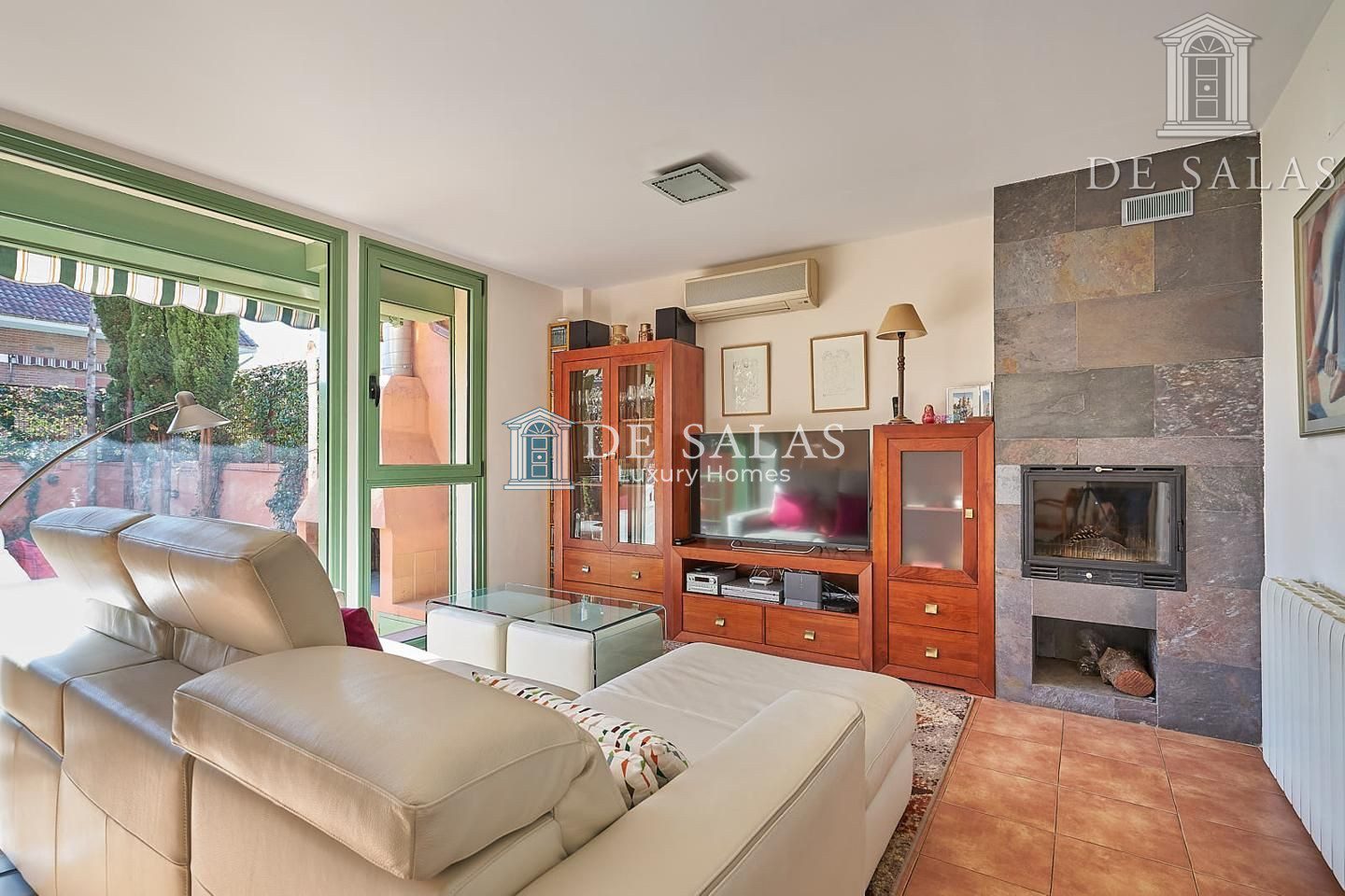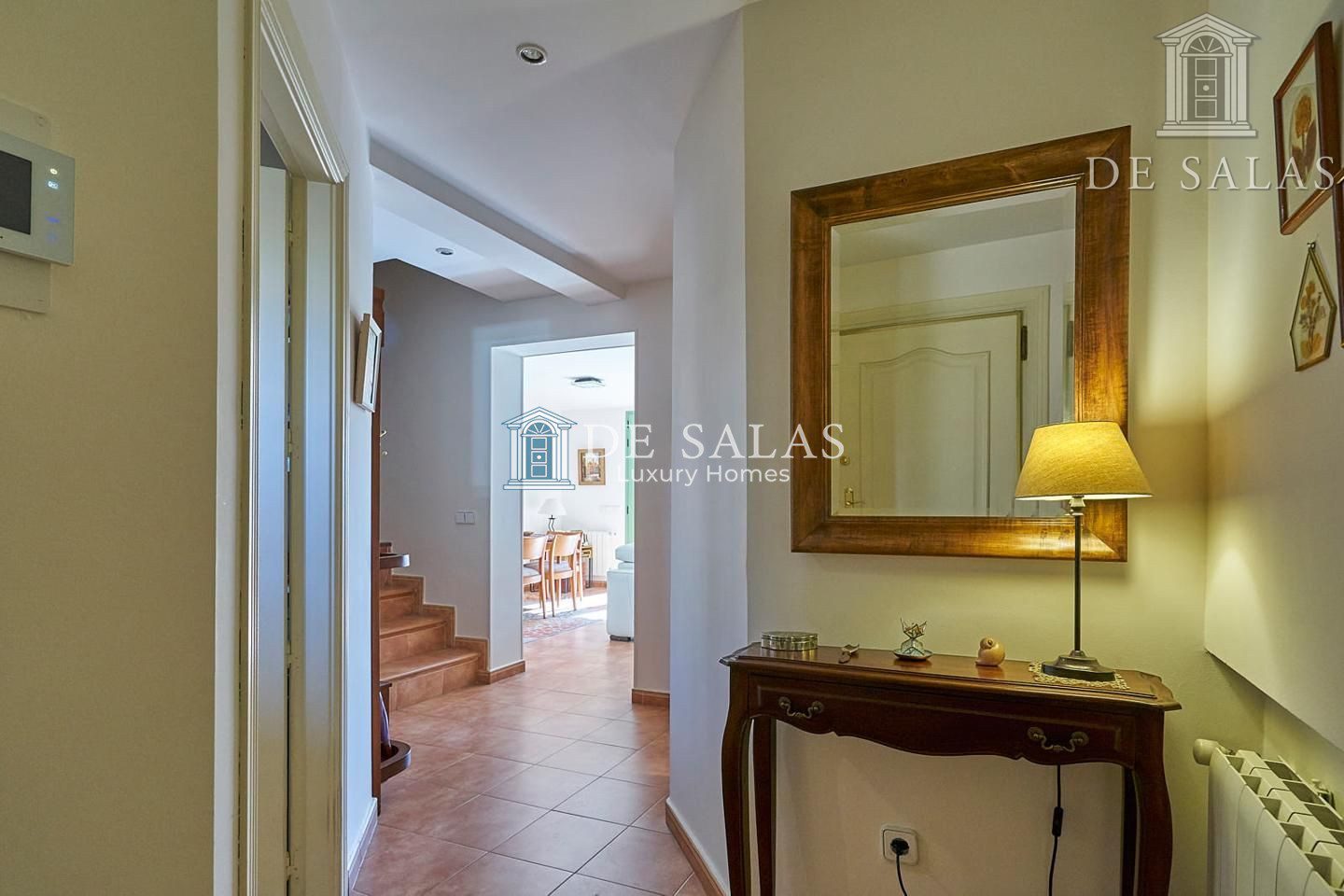 DE SALAS LUXURY HOMES Ref. MAV02795, presenta esta sensacional vivienda pareada de 5 dormitorios, 3 baños y un aseo de cortesía, ideal para quienes buscan espacio, luz y una conexión especial con la naturaleza, todo ello en una ubicación privilegiada cerca del anillo verde de Madrid.