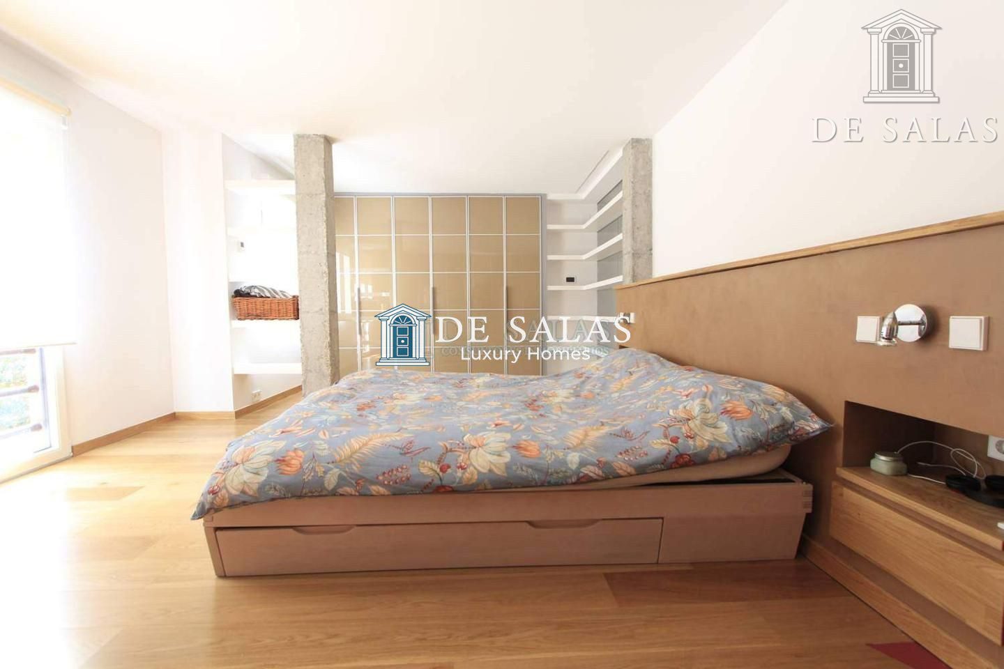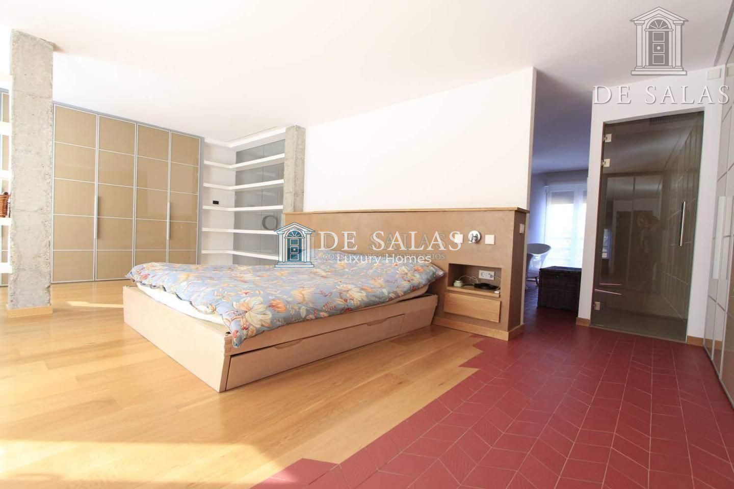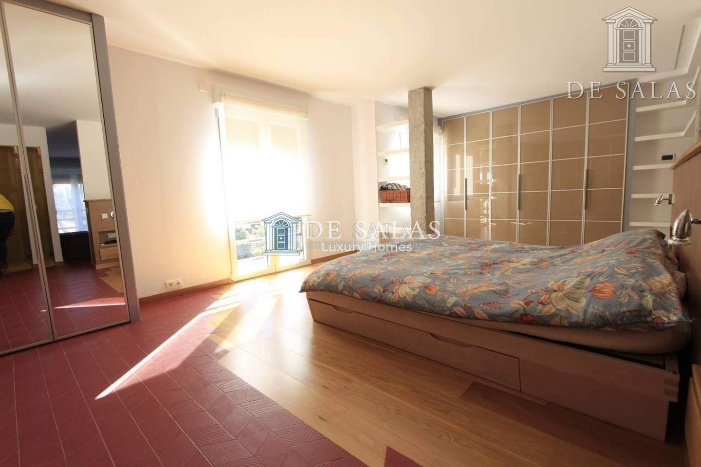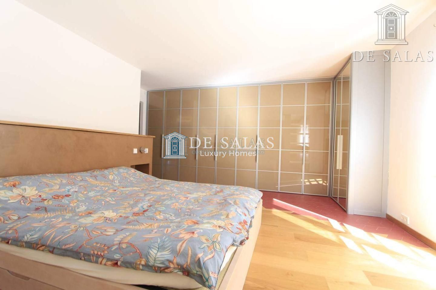 En la primera planta encontramos el dormitorio principal que es una master suite con dos baños y amplios armarios, además en la actualidad dispone de gimnasio que es un espacio multifuncional que puede adaptarse a las necesidades de sus residentes pudiendo transformarse en un elegante dormitorio, sus amplios ventanales de suelo a techo permiten la entrada de luz natural que inunda la estancia y le aporta calidez y confort además de excelentes vistas.