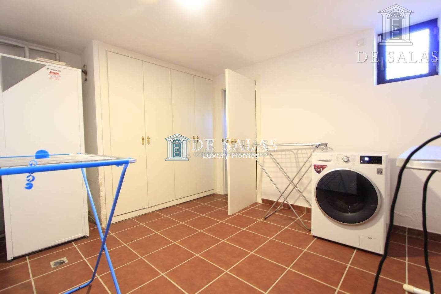 La planta sótano cuenta con zona de servicio con un dormitorio y baño, cuarto de lavandería con lavadora y secadora además de espacio para tendedero y zona de planchado así como gran capacidad de almacenaje. Dispone de dos plazas de garaje.