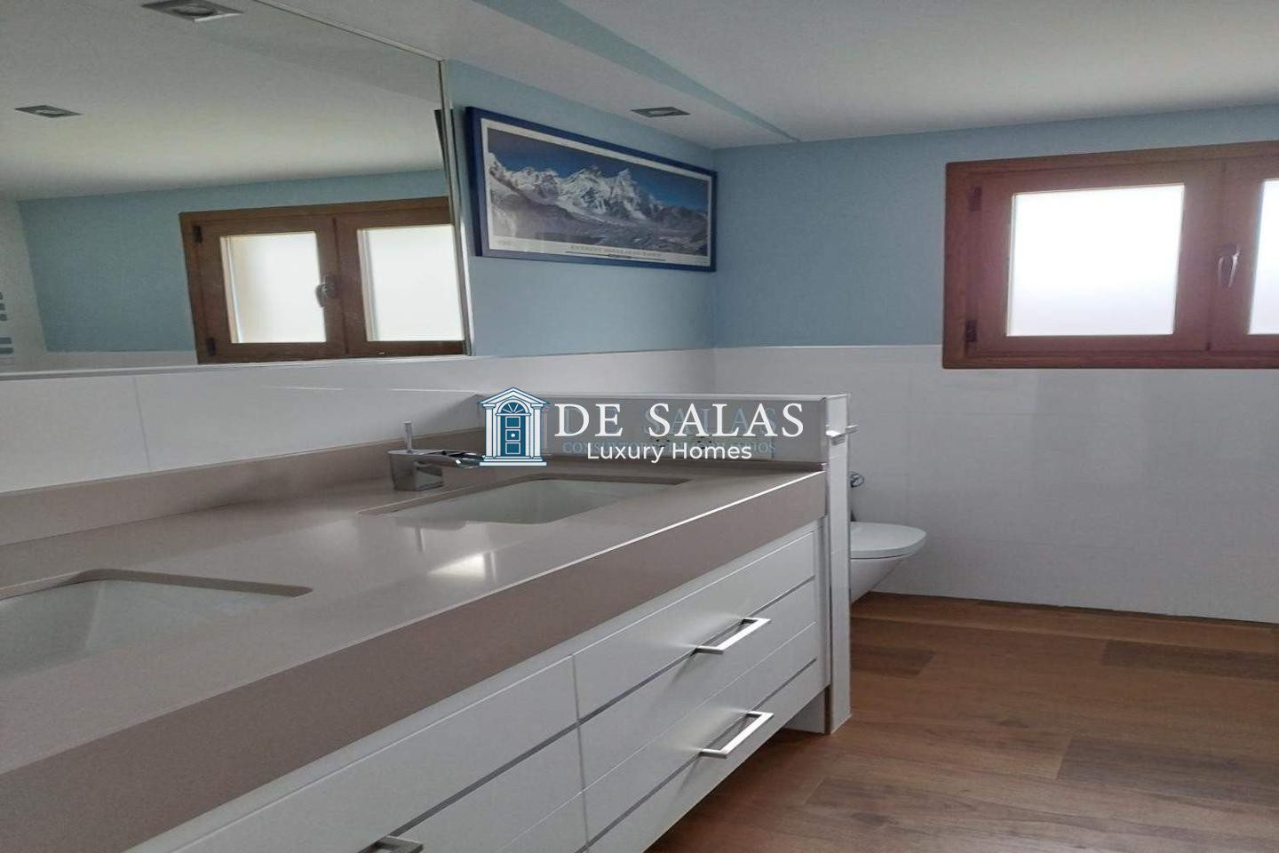 Destacamos su zona de recibo con un gran hall recibidor en el que encontramos una escalera elegante totalmente de madera, zona de salón, sala de estar y una zona diferenciada de comedor que se comunican a través de puertas correderas que permiten una gran