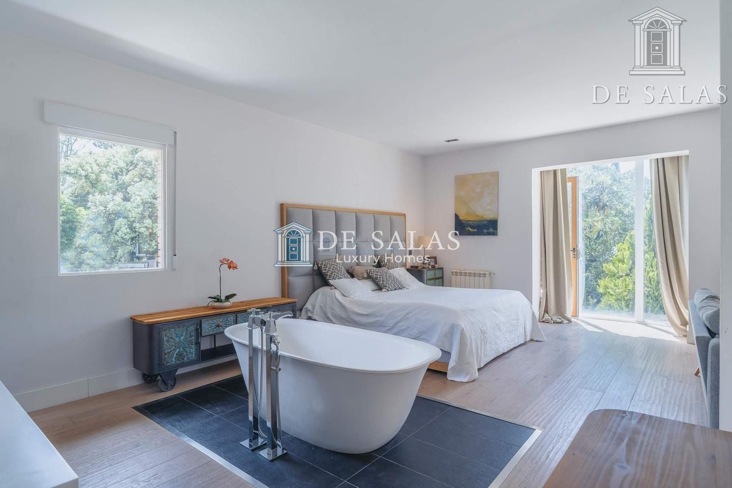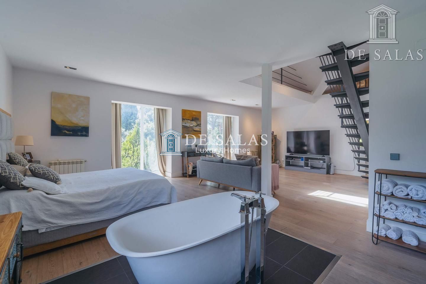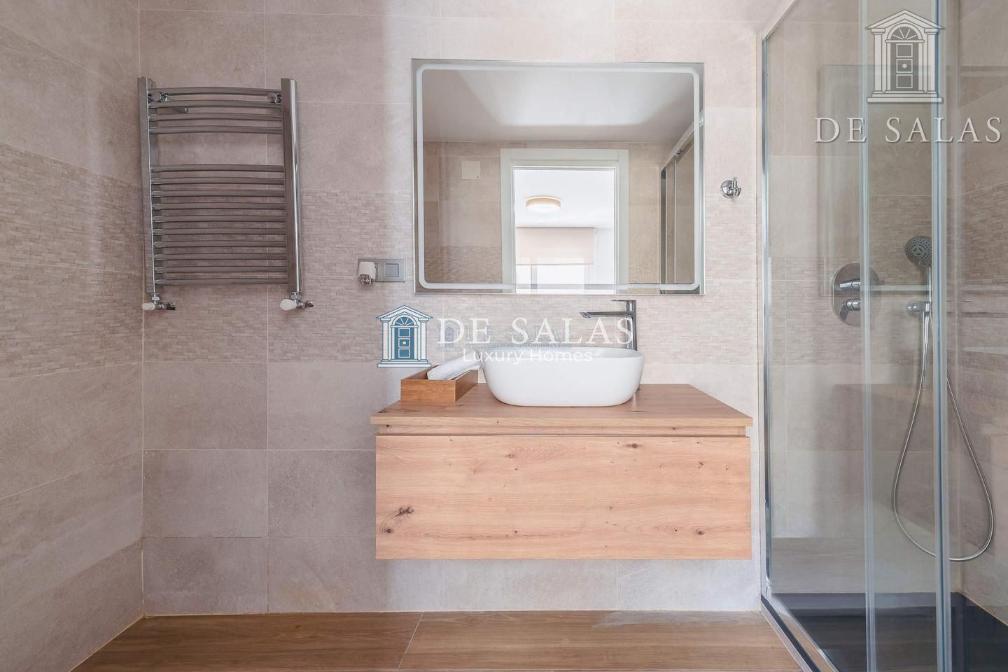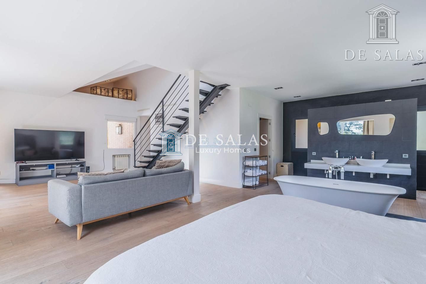 – 2 Dormitorios y 2 baños (los dos con baño en suite y uno de ellos con doble vestidor y ampliado con un despacho en bajo buhardilla)