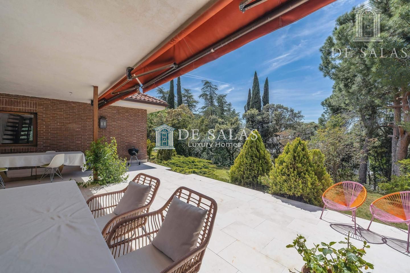 En el exterior el cuidado jardín dan el marco especial con arboles, arbustos y flores que le dan un plus de tranquilidad, privacidad y apetece hacer vida al aire libre disfrutando de su zona de barbacoa, piscina y pista de pádel.