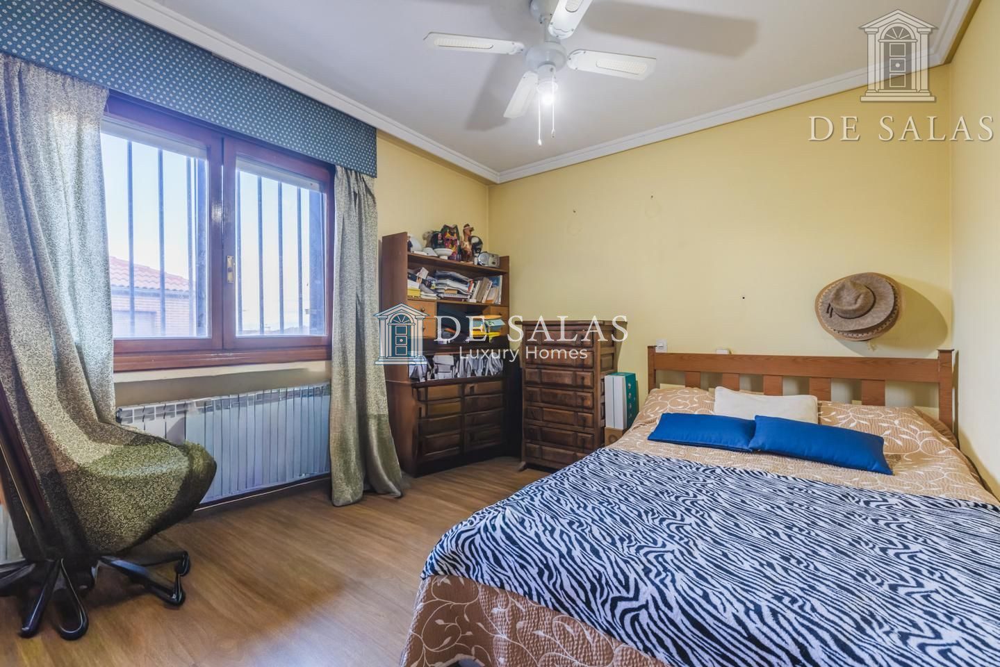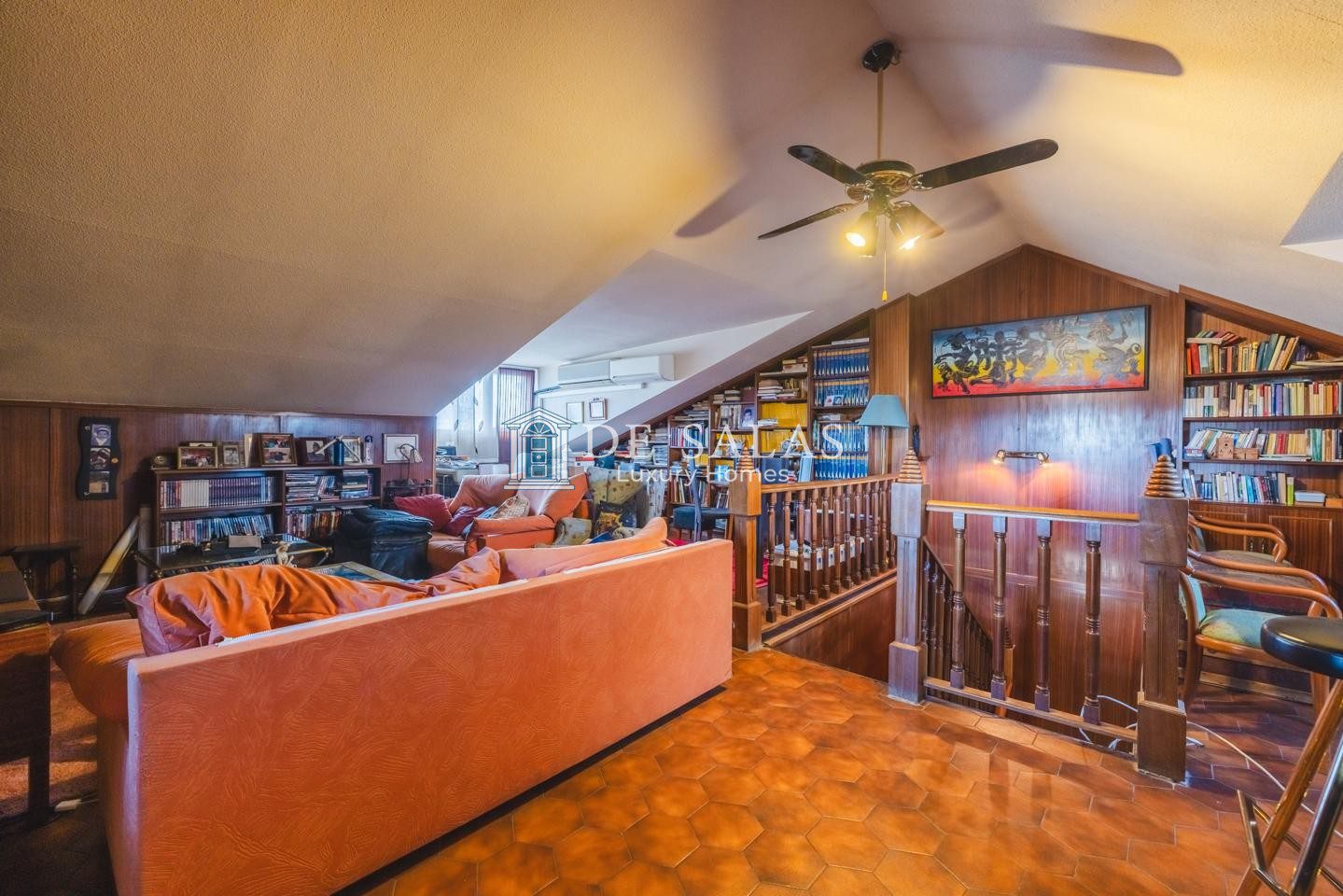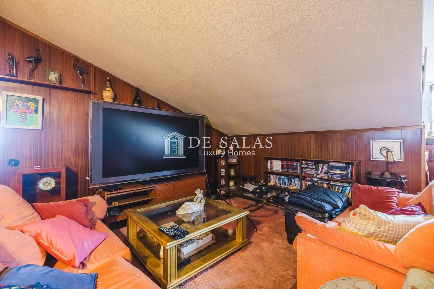La zona de descanso se encuentra en la primera planta, donde se distribuyen cuatro dormitorios de generosas dimensiones. Entre ellos destaca el principal en suite, que goza de su propio baño privado con ducha y acceso a una acogedora terraza independiente, mientras que el resto de habitaciones comparten un segundo baño completo. Por su parte, la buhardilla ofrece un espacio de grandes dimensiones que puede utilizarse como dormitorio adicional o despacho con aseo en suite, complementado por una amplia sala de juegos. Finalmente, el sótano sorprende por su gran amplitud al albergar un dormitorio de servicio con ventana, dos despensas, una cómoda zona de estar, cuarto de calderas y un amplio garaje privado.