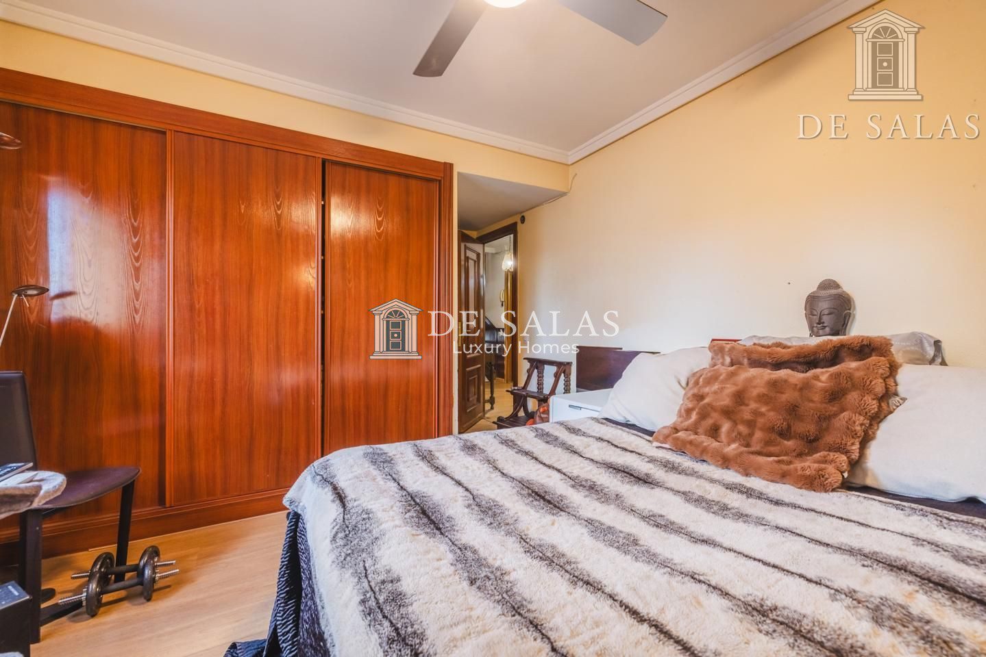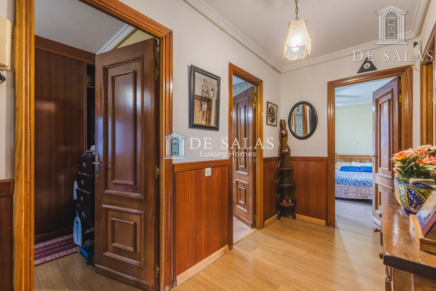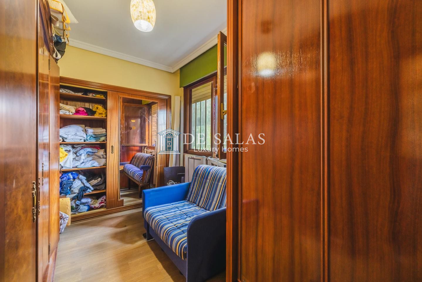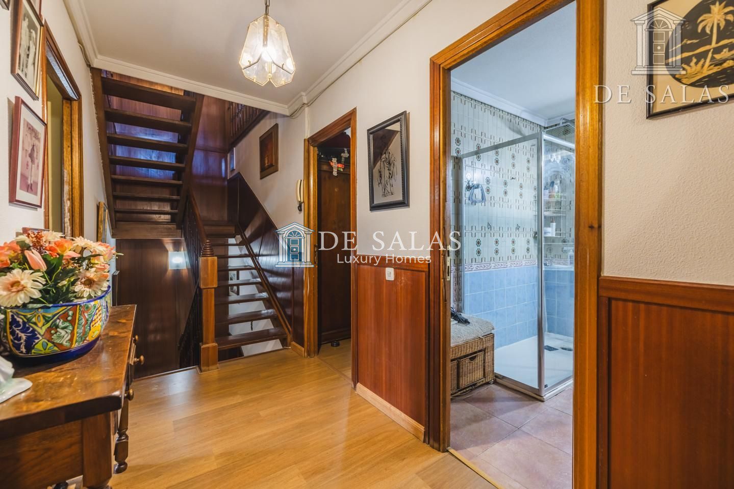 La zona de descanso se encuentra en la primera planta, donde se distribuyen cuatro dormitorios de generosas dimensiones. Entre ellos destaca el principal en suite, que goza de su propio baño privado con ducha y acceso a una acogedora terraza independiente, mientras que el resto de habitaciones comparten un segundo baño completo. Por su parte, la buhardilla ofrece un espacio de grandes dimensiones que puede utilizarse como dormitorio adicional o despacho con aseo en suite, complementado por una amplia sala de juegos. Finalmente, el sótano sorprende por su gran amplitud al albergar un dormitorio de servicio con ventana, dos despensas, una cómoda zona de estar, cuarto de calderas y un amplio garaje privado.