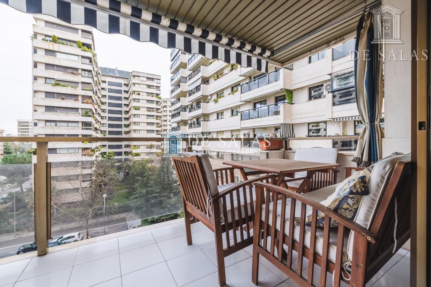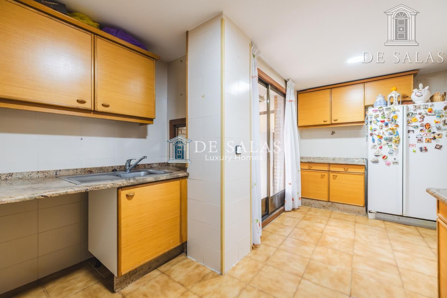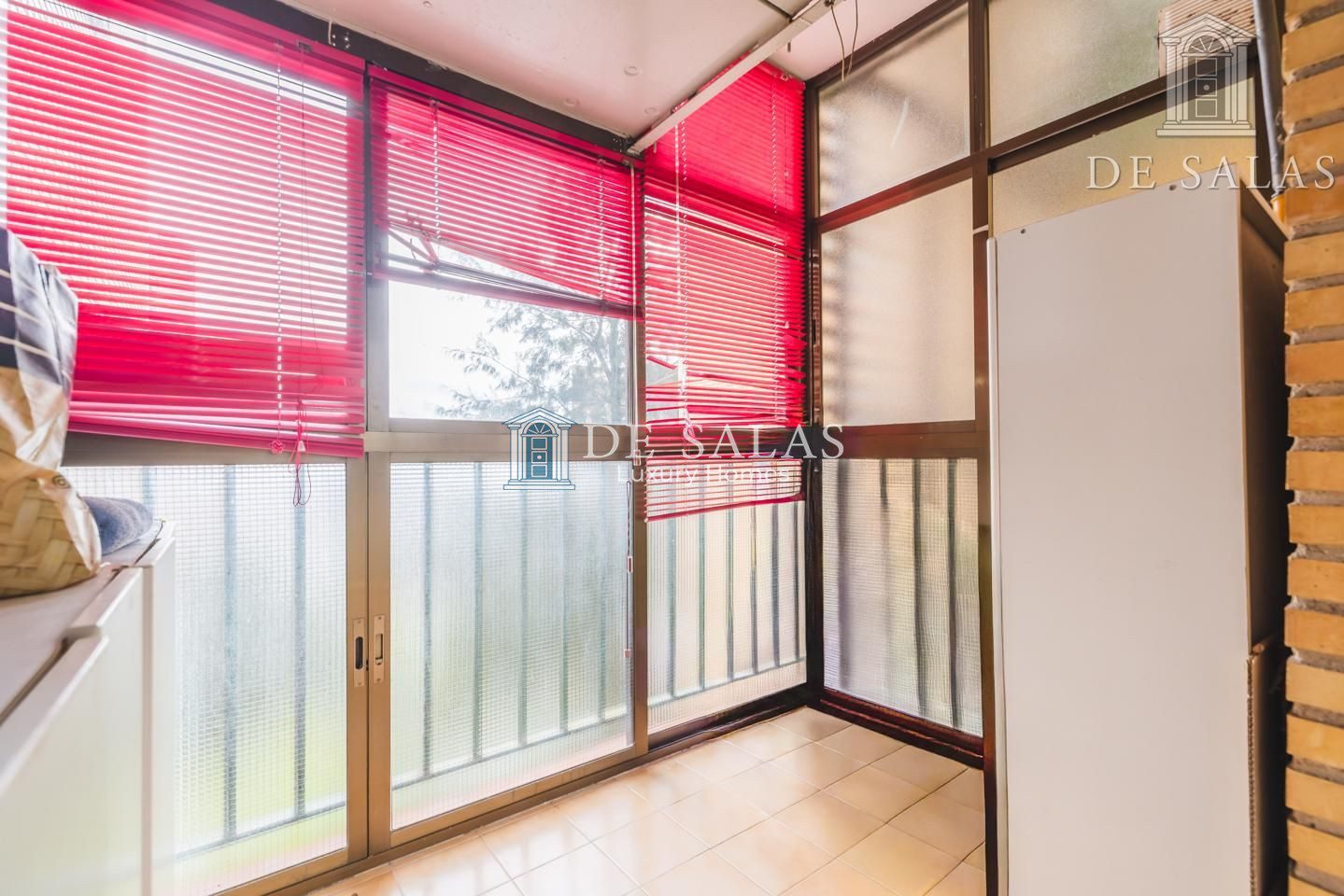 La distribución interior comienza con un hall de entrada principal que da paso al salón comedor amplio y acogedor que dispone de acceso directo a una estupenda terraza soleada, mientras que la cocina cuenta con entrada de servicio independiente y un práctico cuarto tendedero. La zona de descanso la configuran cuatro dormitorios de generoso tamaño, entre los que destaca la suite principal con su propio baño privado, además de contar con un segundo baño completo y un aseo de cortesía para las visitas. En cuanto a sus materiales, la vivienda está equipada con puerta acorazada, suelos de parquet de espiga, ventanas con doble climalit y carpintería de madera sapelí, todo ello complementado con aire acondicionado por conductos y calefacción individual de gas natural.