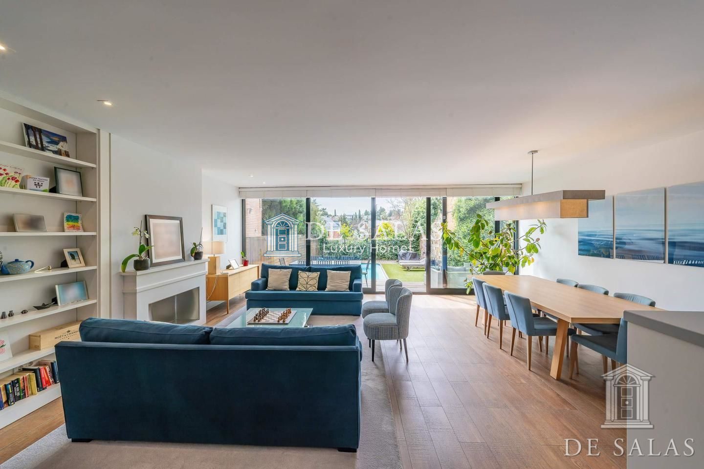 La vivienda destaca principalmente por su planta principal, ya que sus propietarios, con gran acierto, integraron la cocina con el Salón-Comedor, por lo que la luminosidad de toda la estancia y las vistas hacia el jardín y piscina, es maravillosa.