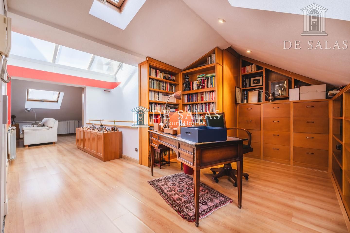 DE SALAS LUXURY HOMES Ref. MAV02875 les presenta este magnífico chalet adosado que destaca por la amplitud de cada una de sus 4 plantas, con más de 100m2 cada una de las principales y por disponer de ascensor en todas ellas.