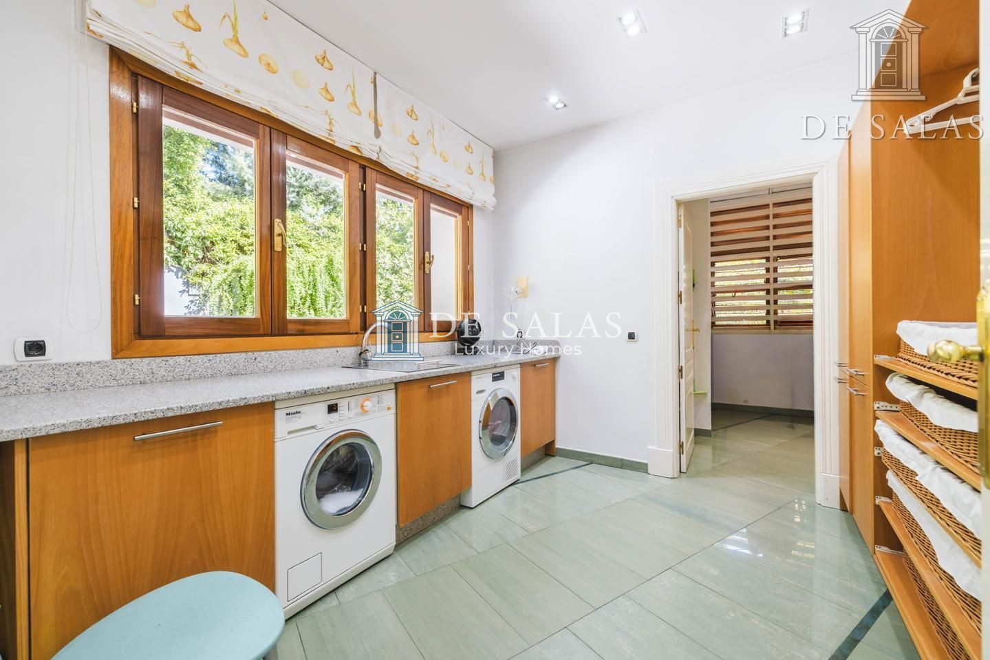 La zona de servicio cuenta con 2 dormitorios y un cuarto de baño, además de las dependencias de lavandería, planchado y tendedero.