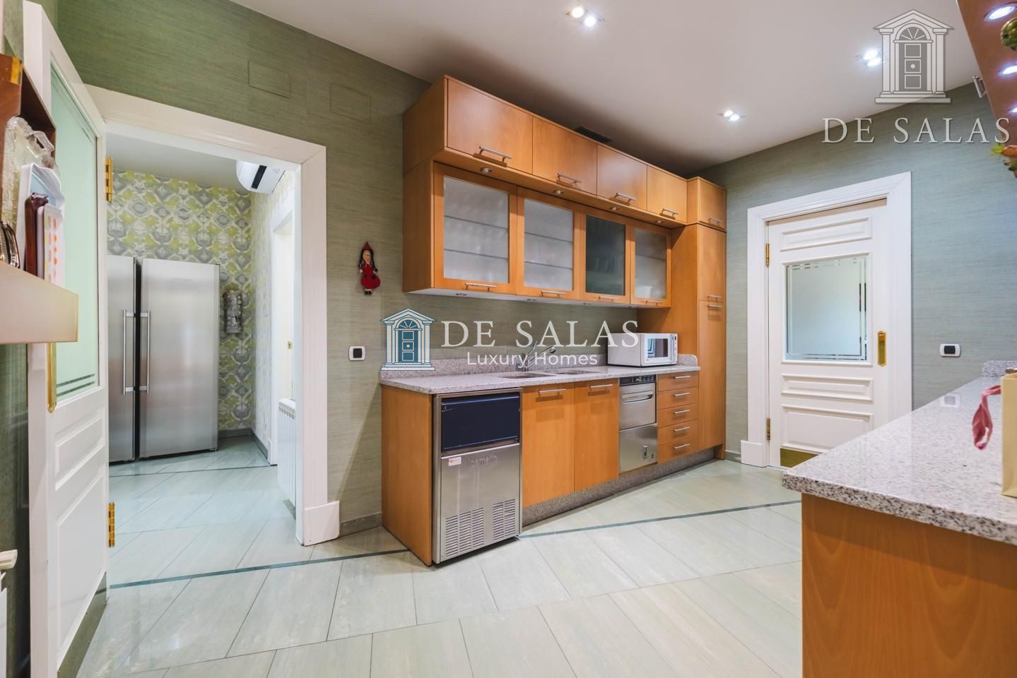 La cocina dispone de isla central, mucha zona para trabajo, muebles altos y bajos y un gran número de cajones para almacenaje. El office se encuentra situado junto al comedor de diario.