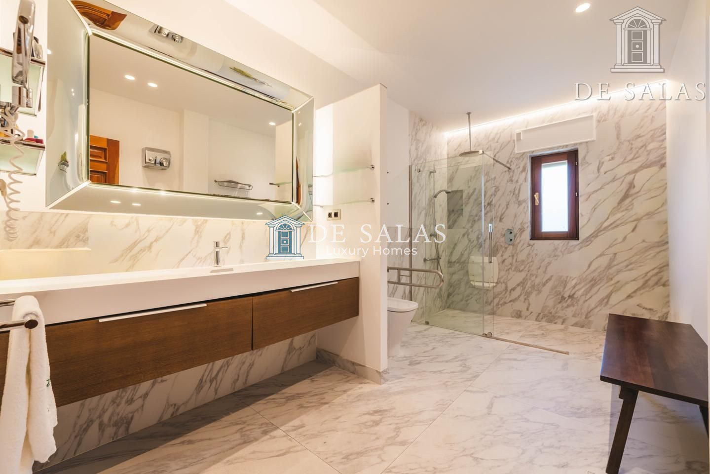 En otro área de esta planta se ubica una sala de estar junto a un cuarto de baño y el impresionante dormitorio principal con 2 vestidores y dos amplios cuartos de baño, cada uno con ducha y bañera.