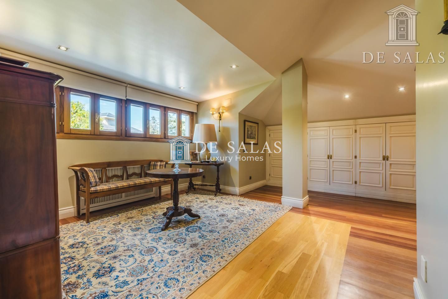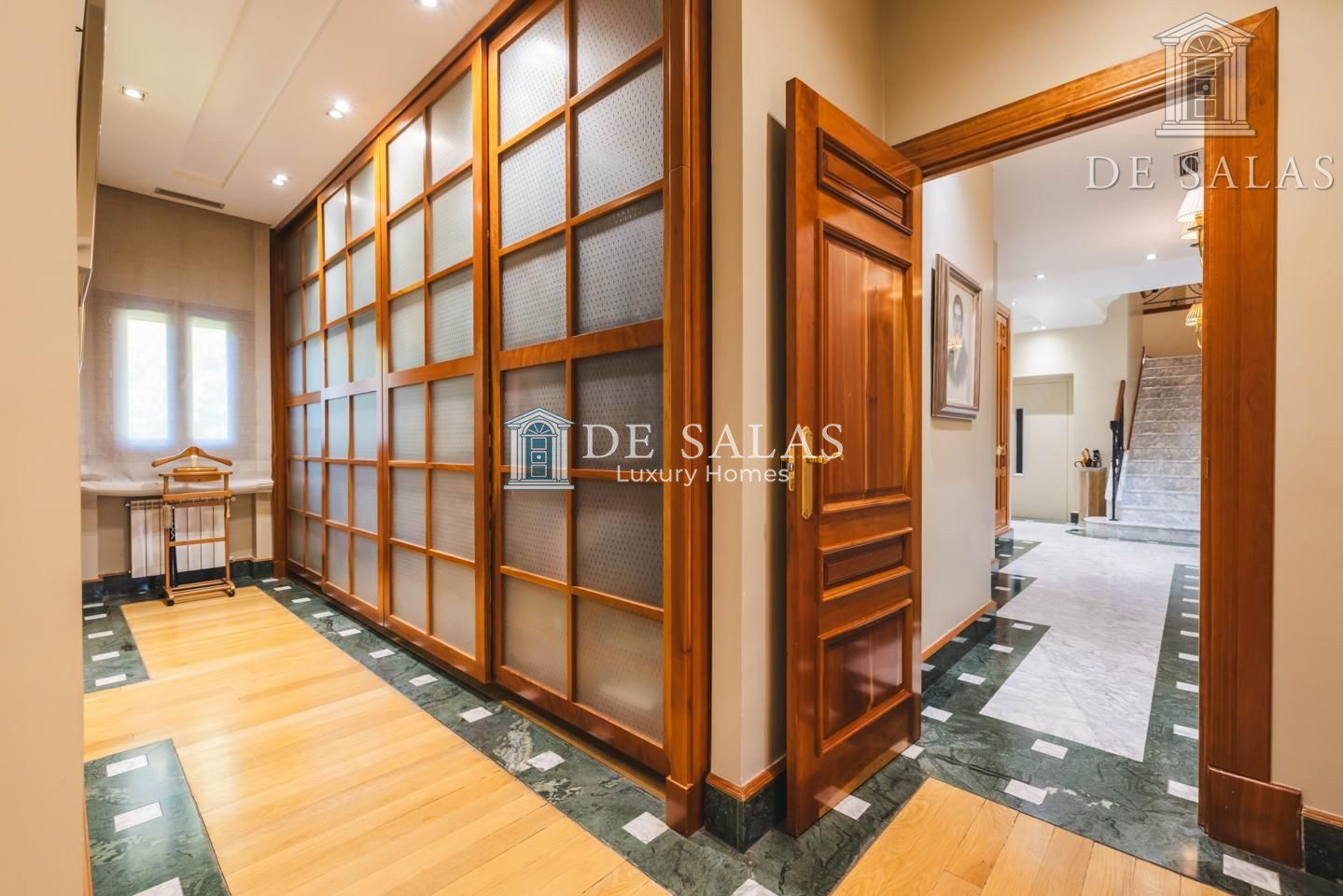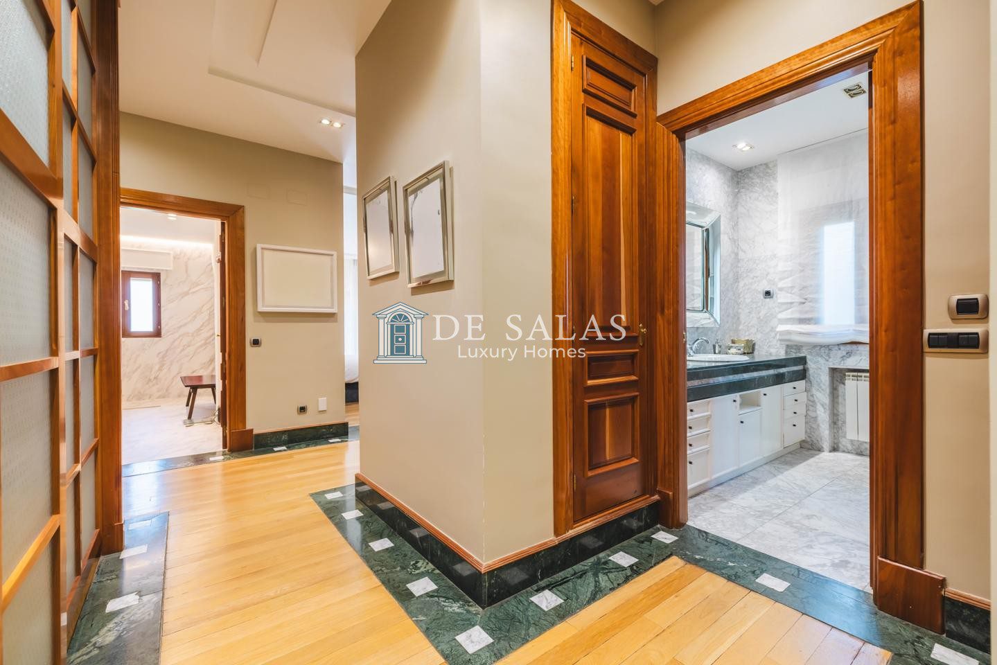 PLANTA PRIMERA: Un estupendo distribuidor rodeado de armarios reúne 3 magníficos dormitorios, cada uno con su vestidor y su propio cuarto de baño.