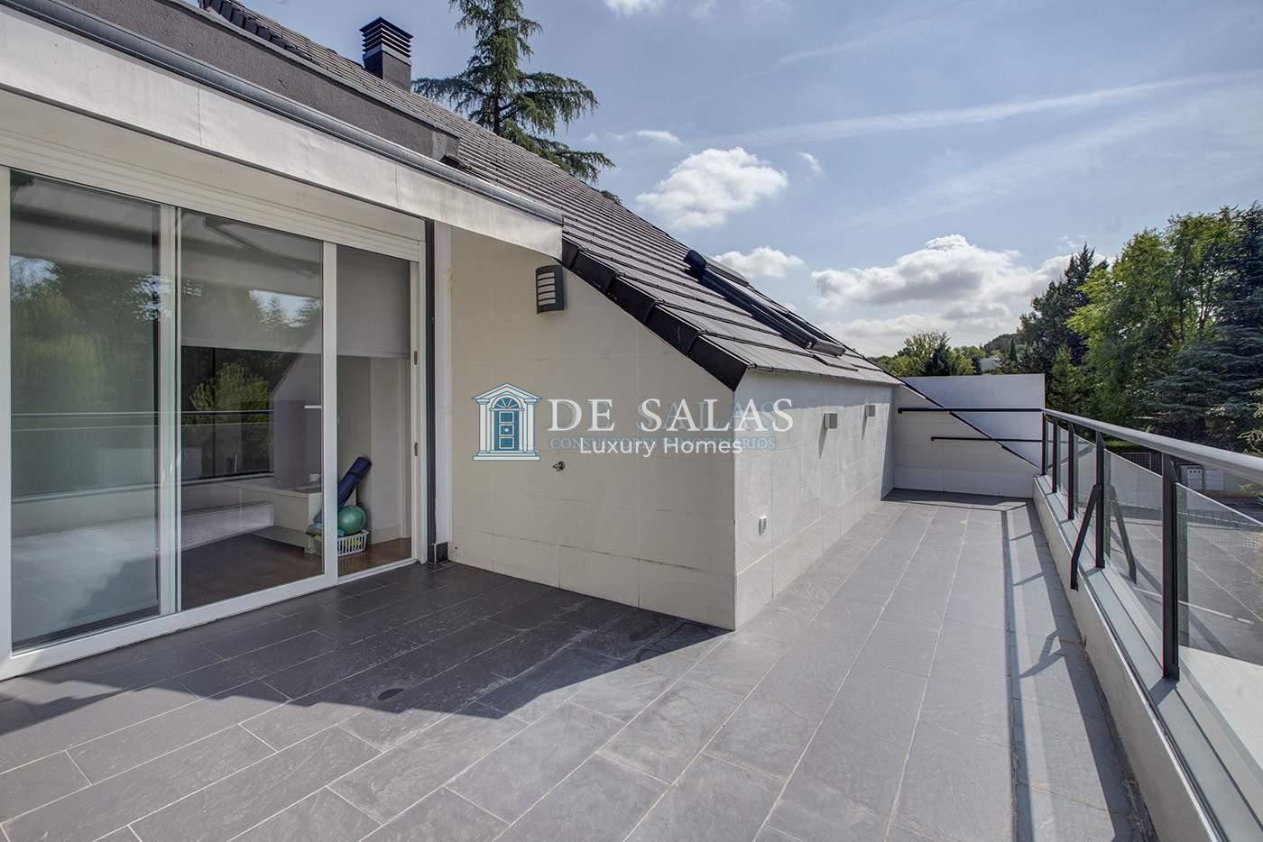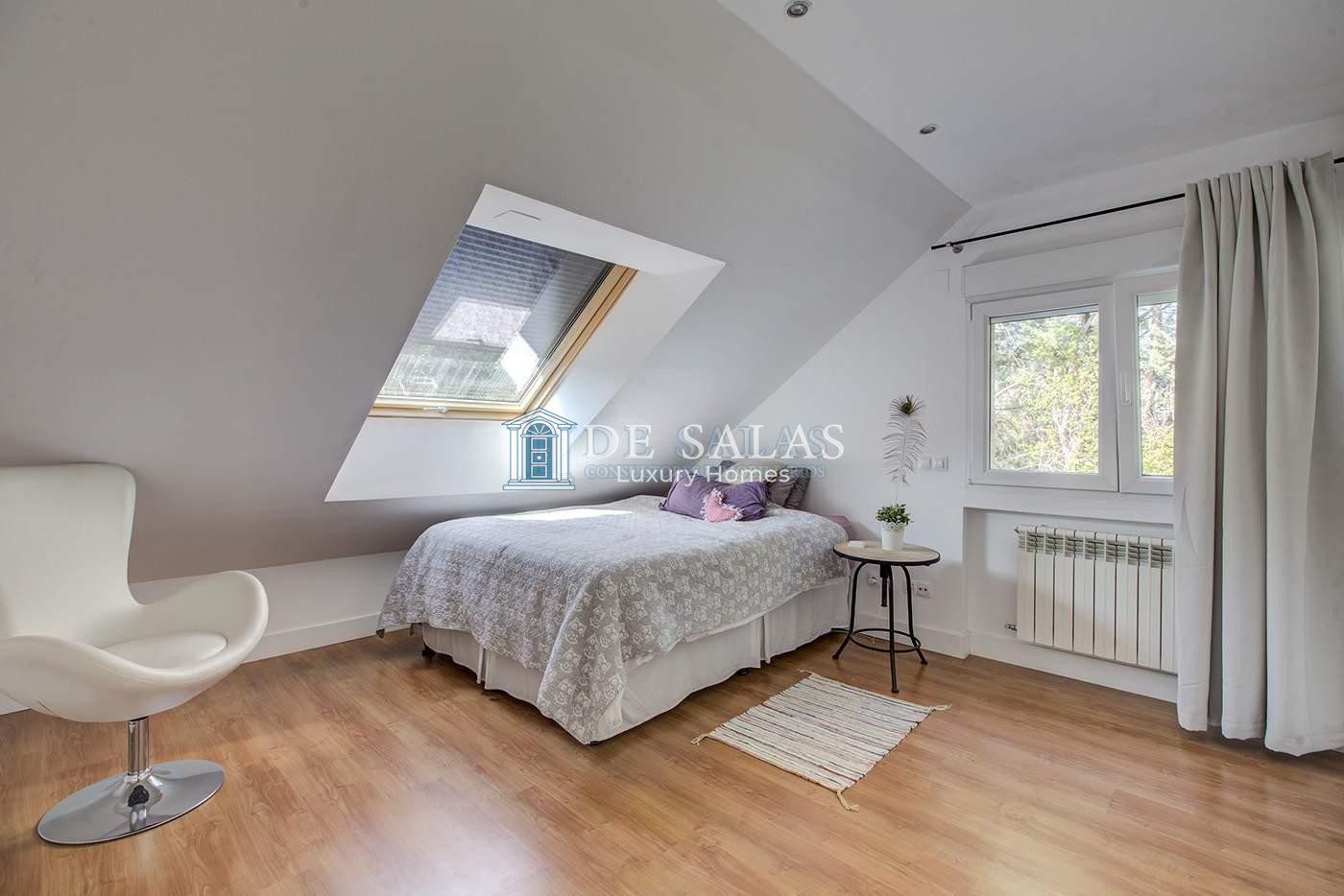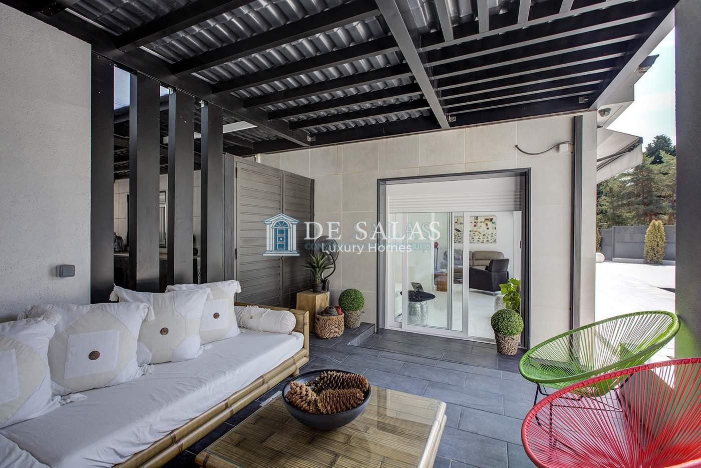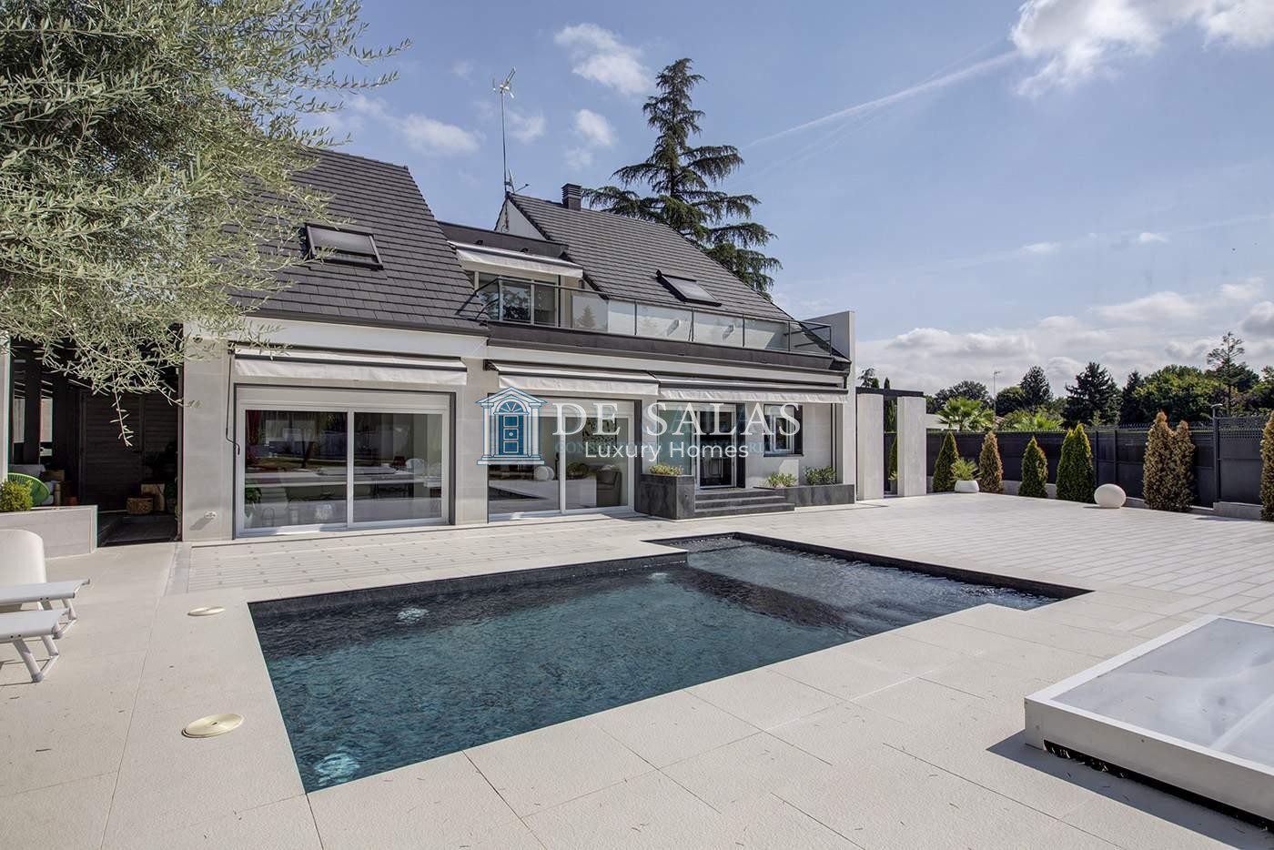 Precioso chalet independiente totalmente reformado, en un entorno privilegiado, en fondo de saco, por lo que se disfruta de una gran tranquilidad. Cuenta con un amplio salón en dos niveles, cocina con office con grandes ventanales, y todo con acceso al porche exterior para disfrutar de la piscina y jacuzzi exterior. Los cuatro dormitorios que tiene el chalet son muy luminosos y amplios.