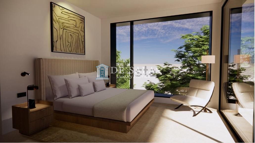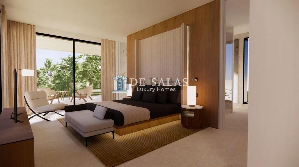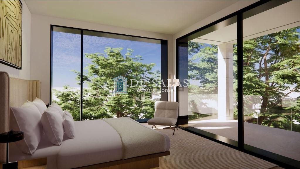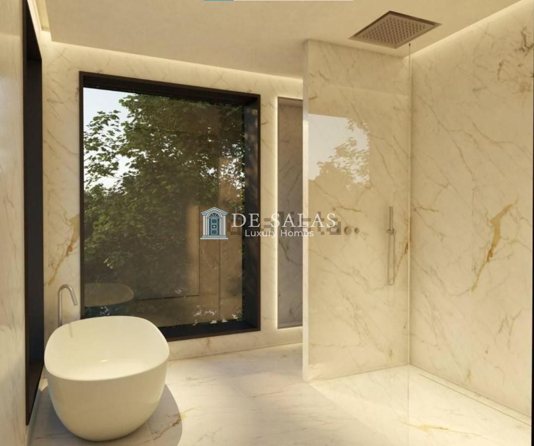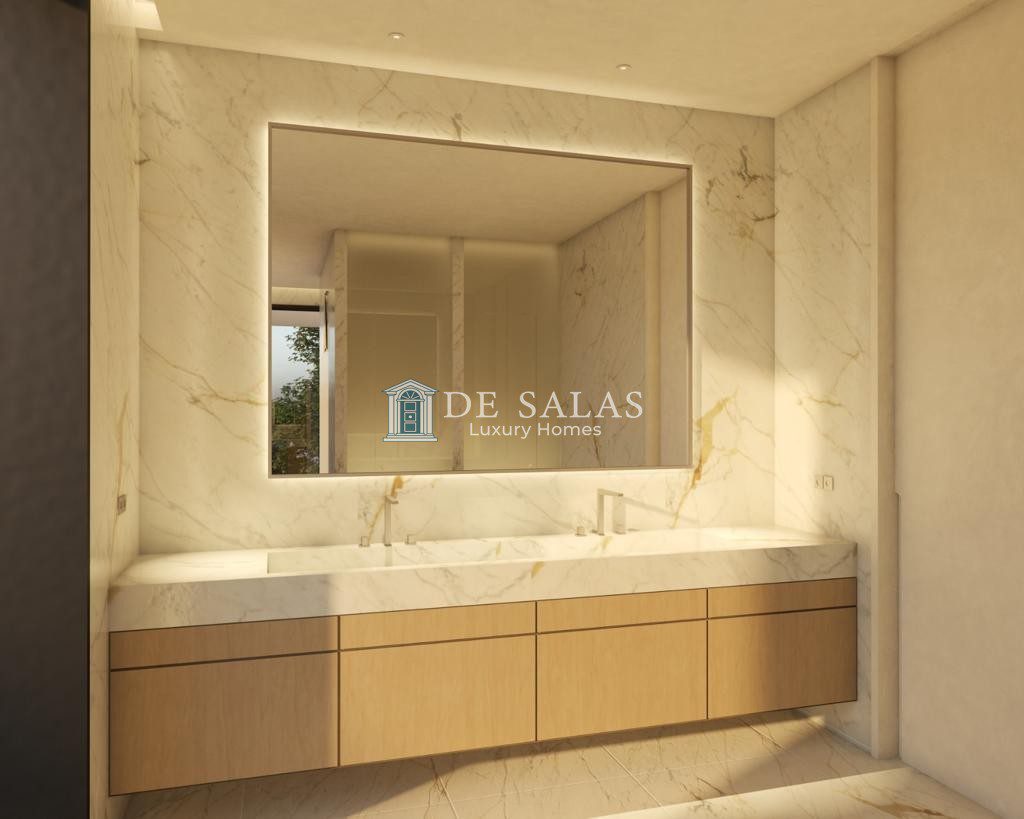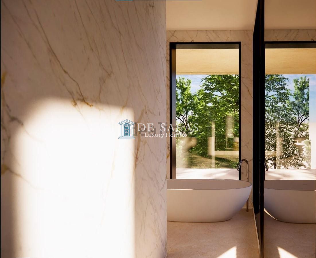 Una master suite de más de 100 m2 con terraza y espectacular vestidor, un baño luminoso con bañera exenta junto a una ventana de suelo a techo que permite la visión total de la parcela, dos cabinas de inodoro, un gran lavabo longitudinal, y una cabina de ducha doble.