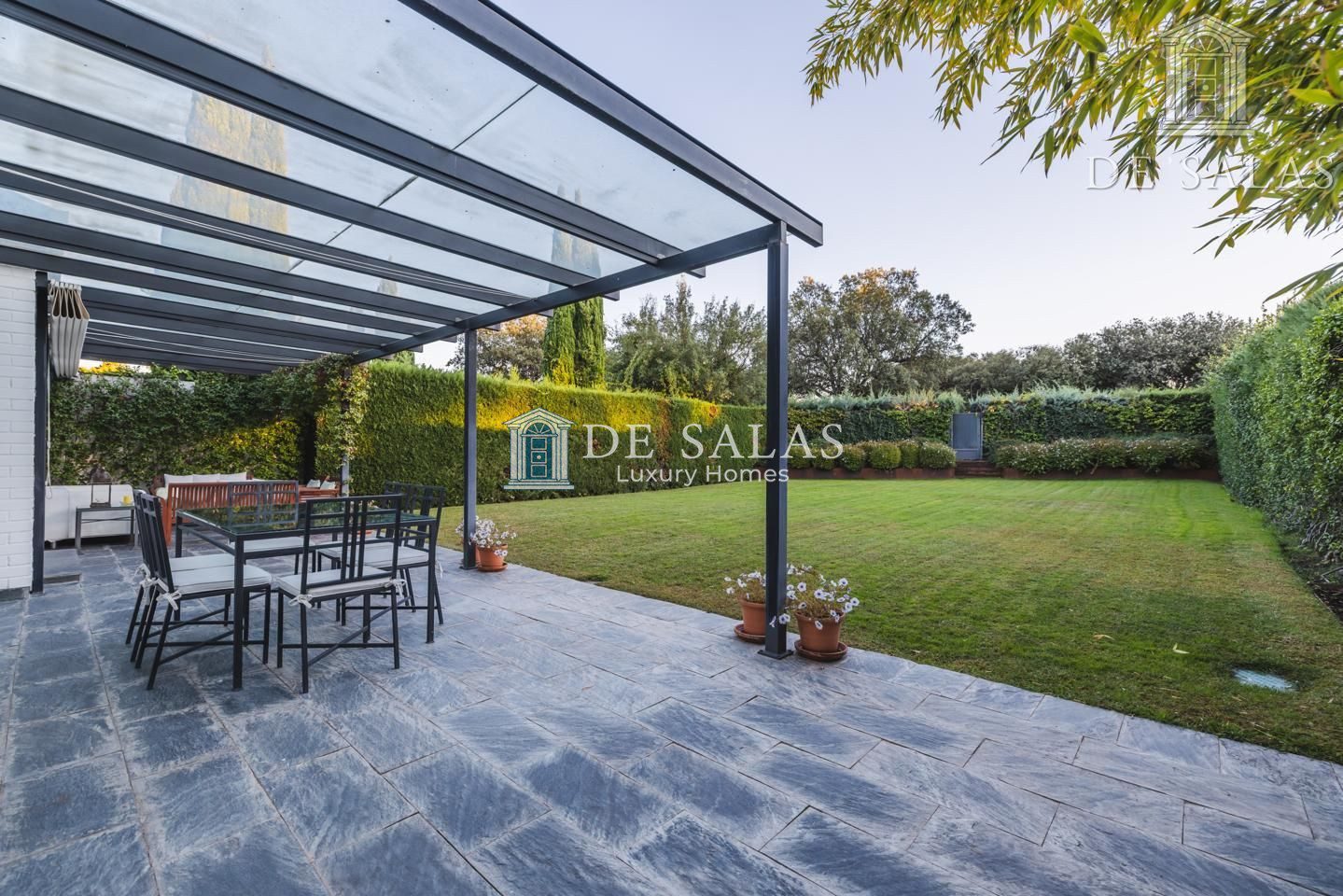 El chalet se encuentra en una urbanización muy exclusiva con generosas zonas comunes ya que goza piscina olímpica, pistas de tenis y pádel, amplias zonas verdes y zona infantil sin olvidar un servicio de seguridad 24 horas.