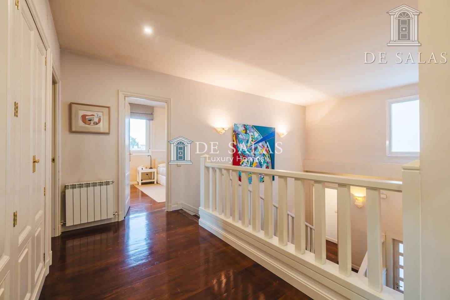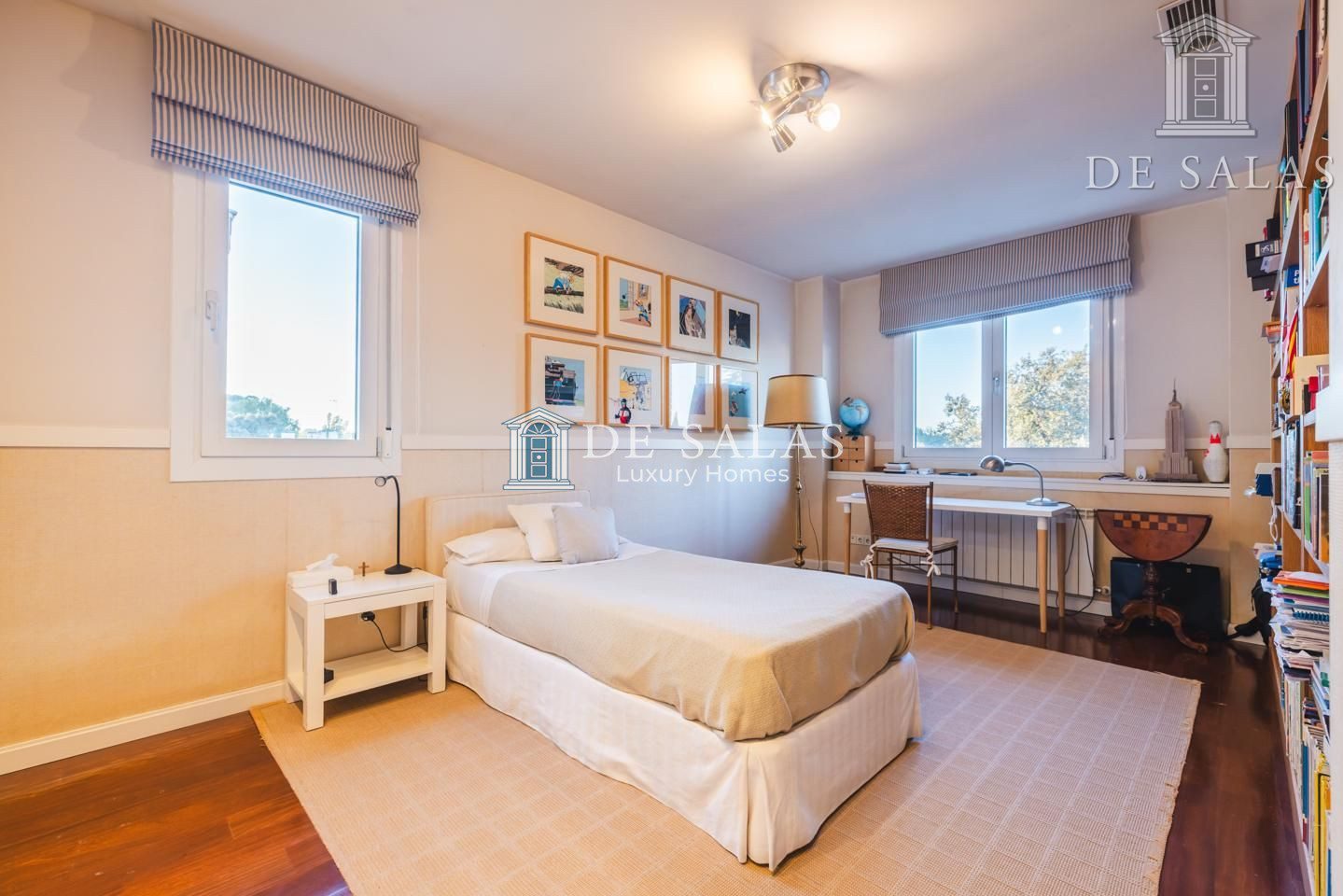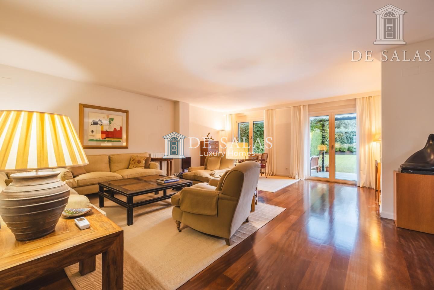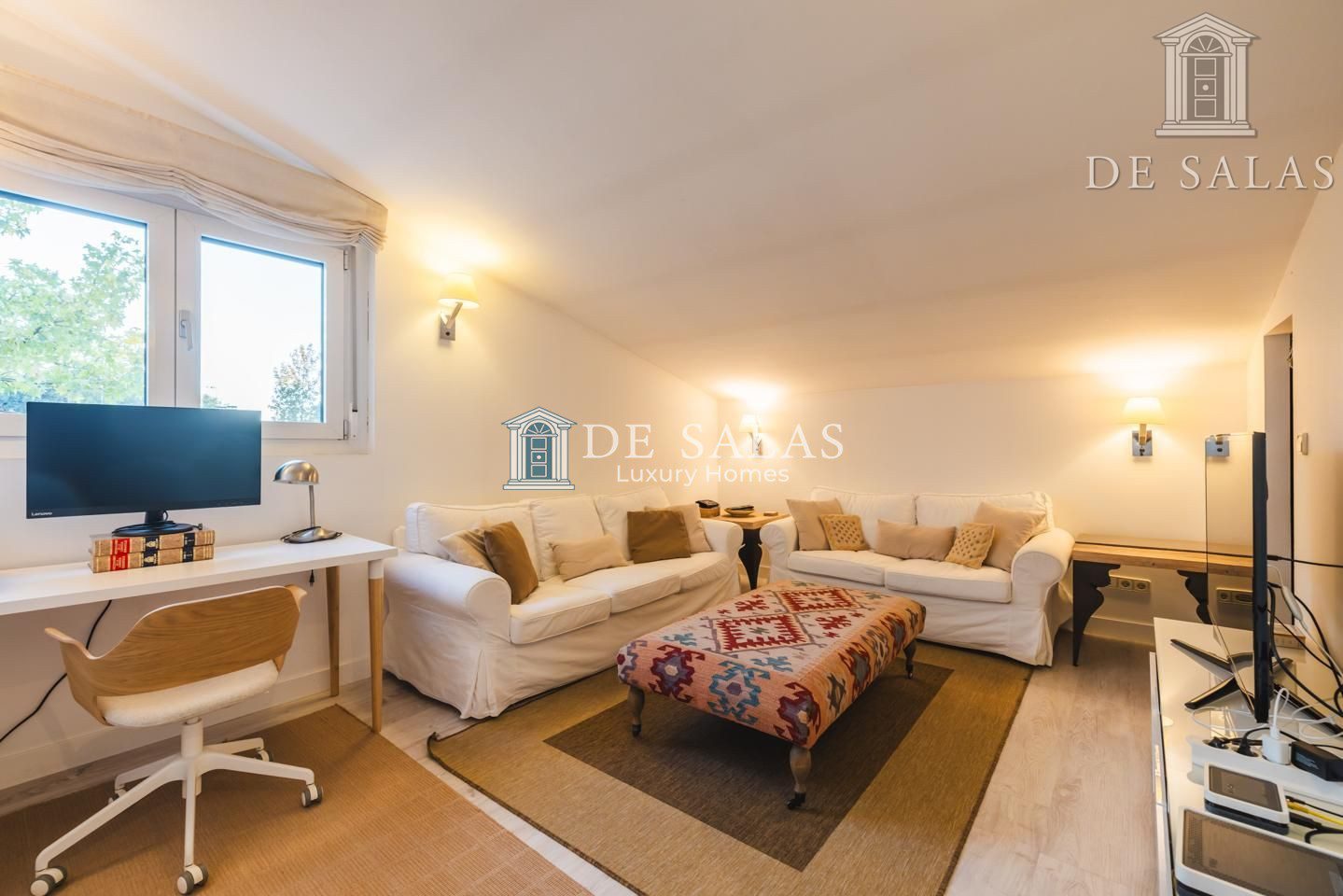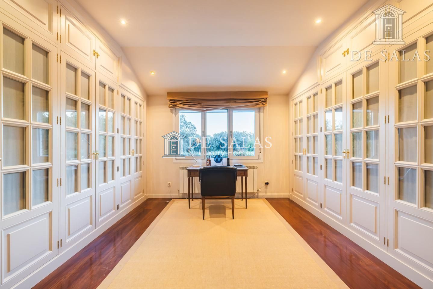 La planta principal cuenta además con una cálida sala de estar. La cocina, con una original distribución, tiene una pequeña zona de office y cuarto de lavandería o dormitorio de servicio.