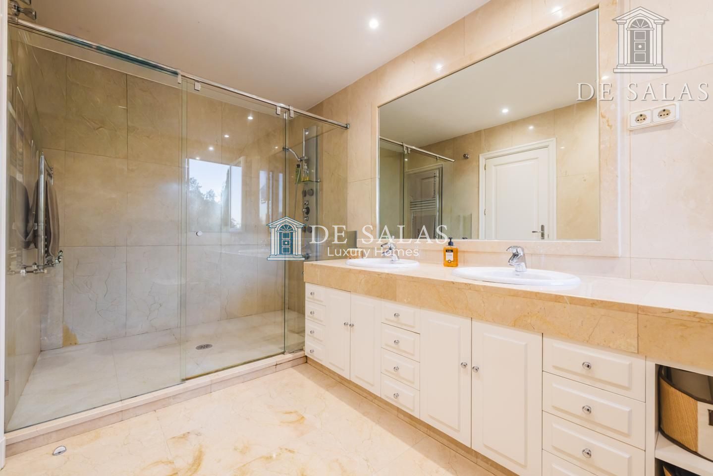 Los cuatro dormitorios de esta vivienda se sitúan en la primera planta.Tres de ellos de amplio tamaño comparten baño con ducha. Finalmente el dormitorio principal es una amplia estancia con un gran ventanal con vistas al jardín, su distribución y diseño son dos de sus principales atributos, con vestidor y baño con una gran ducha.