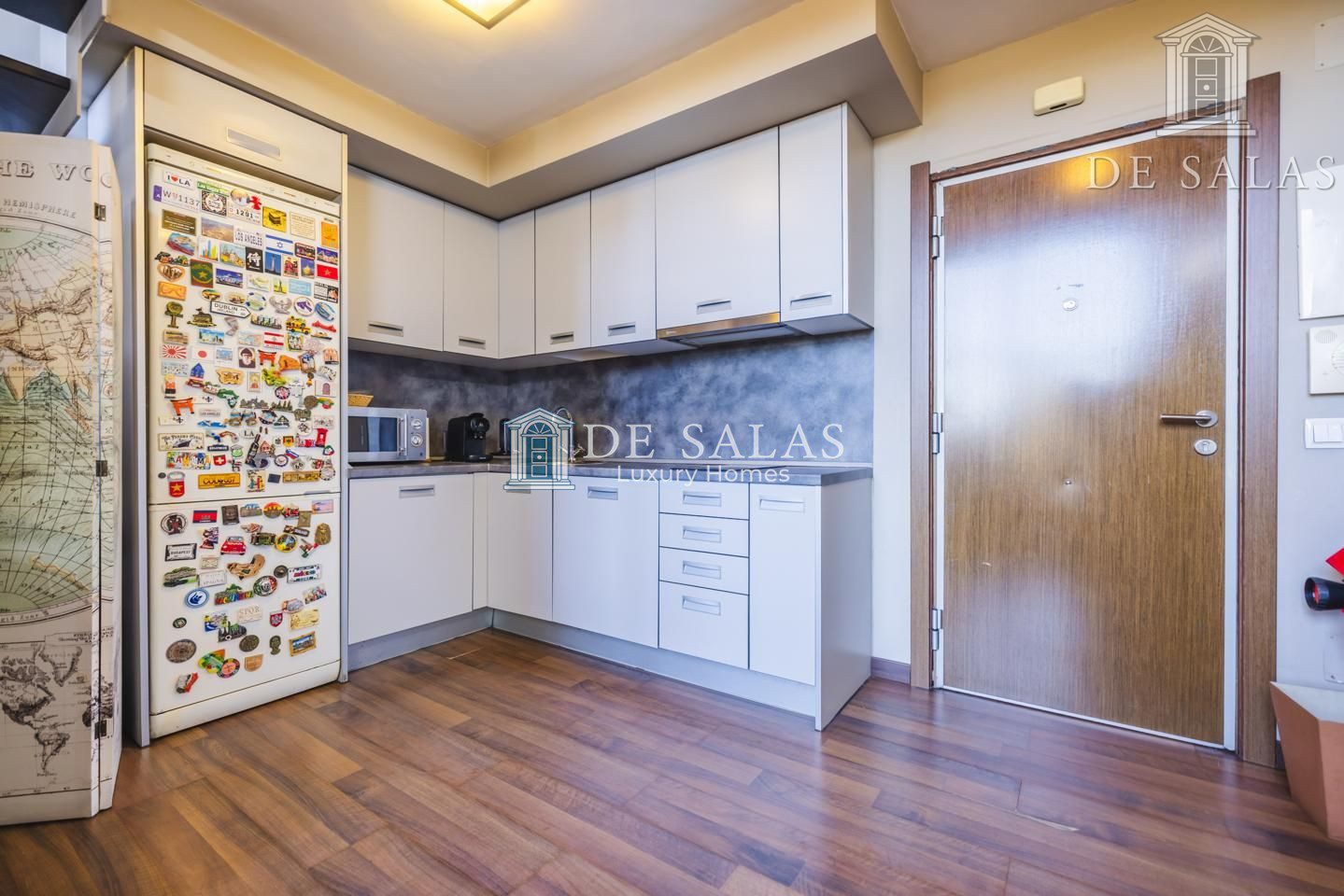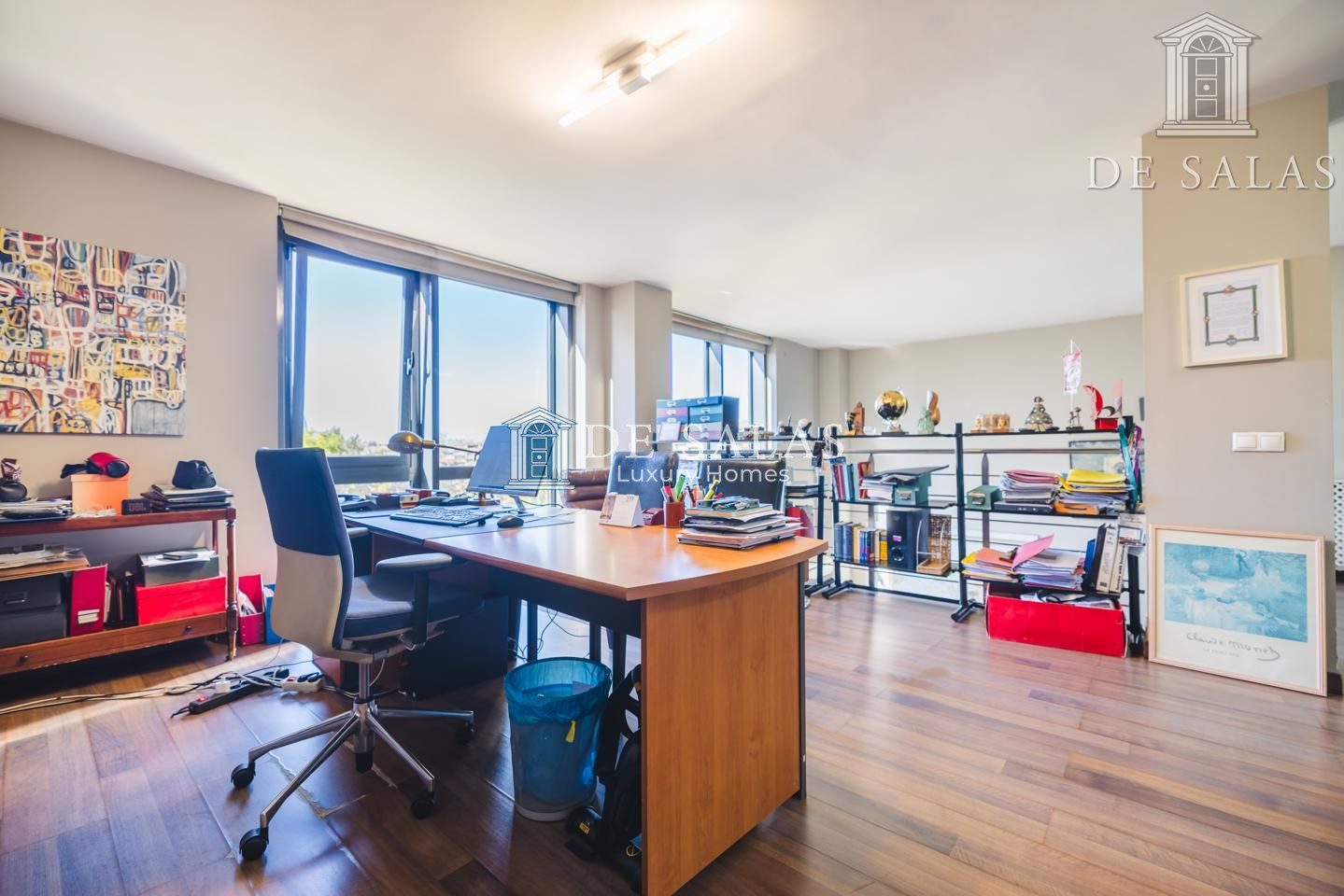 Totalmente diáfana con amplio salón comedor y cocina abierta amueblada-equipada. Con vistas impresionantes sobre el skyline de Madrid y sus espectaculares atardeceres.