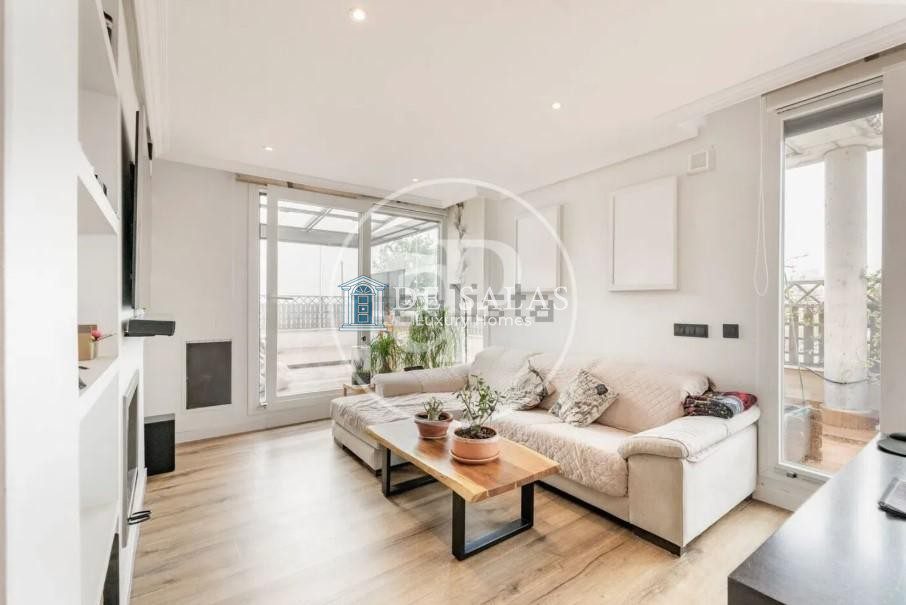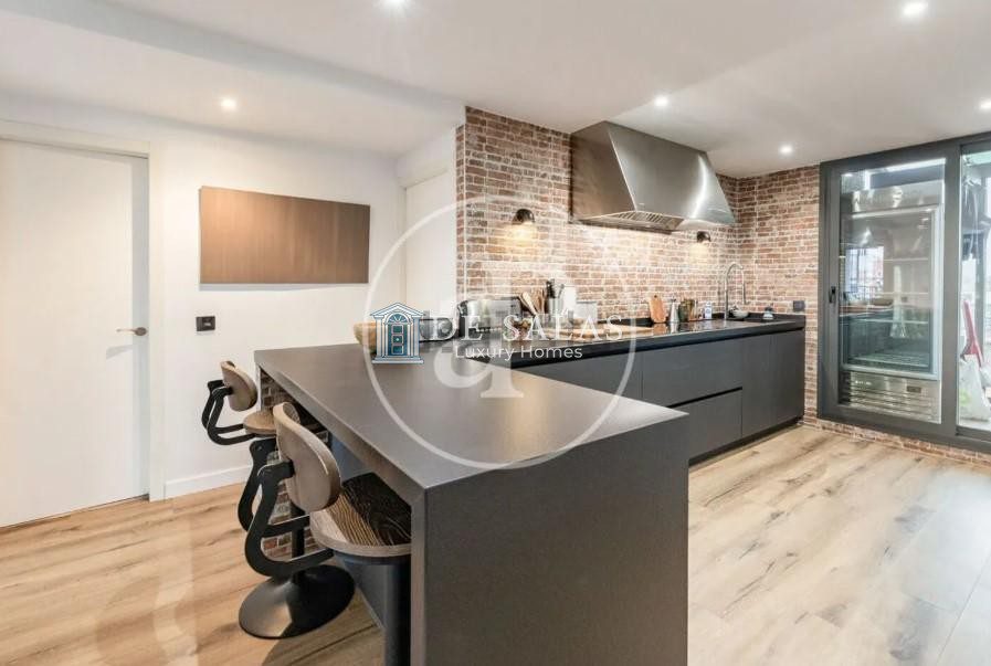 El interior cuenta con un luminoso salón con chimenea y grandes ventanales, una espectacular cocina de diseño, totalmente equipada con electrodomésticos profesionales de alta gama, y con acceso a una segunda terraza de servicio con lavadero.