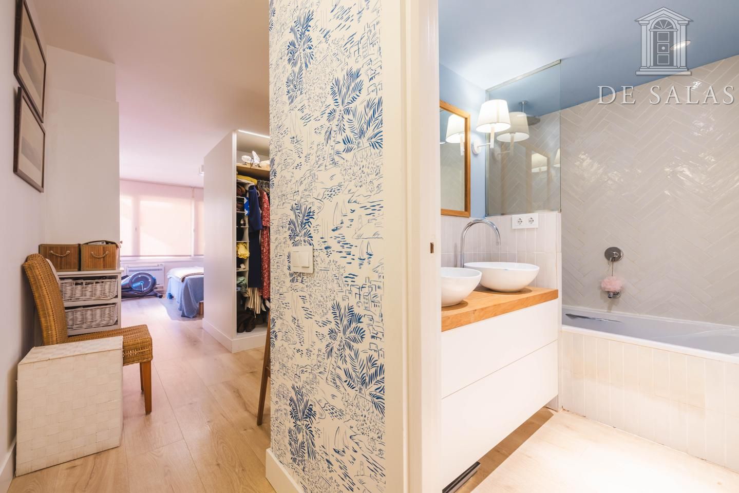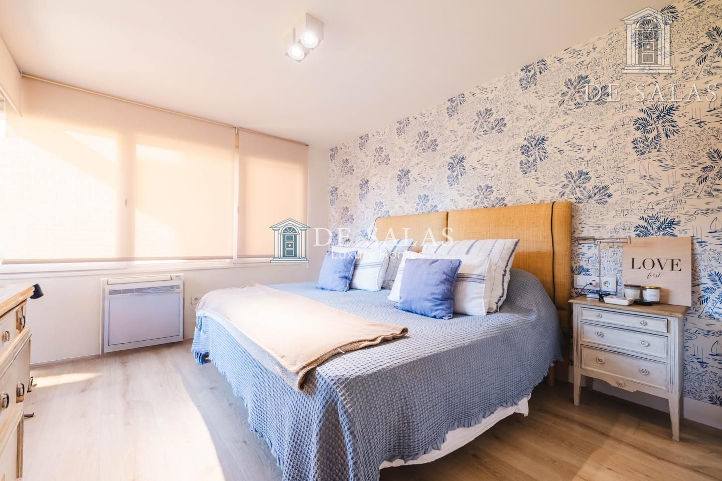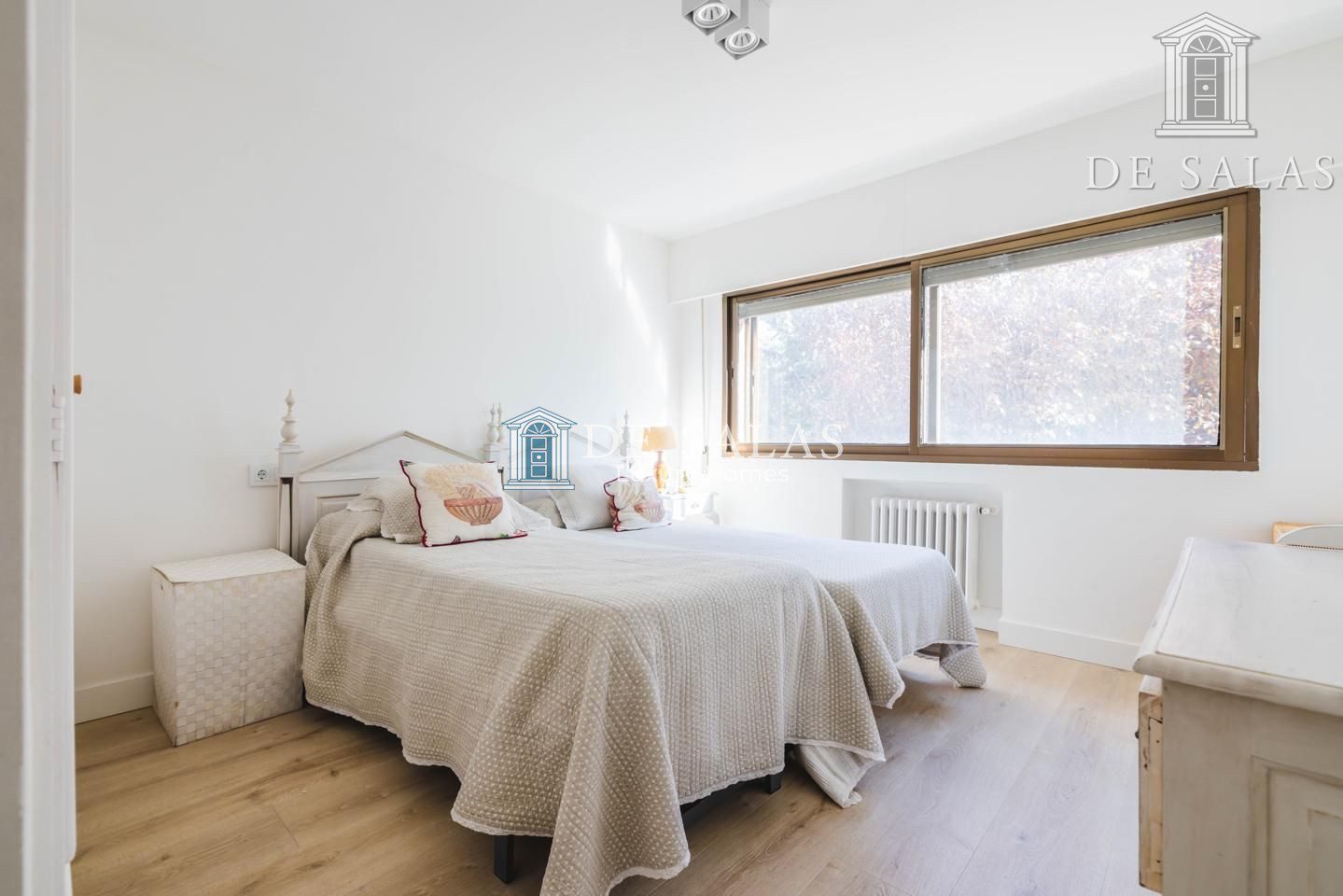 El dormitorio principal cuenta con un vestidor y otra zona de armarios. Al situarse en esquina, la luz inunda la estancia a través de 2 ventanales. El cuarto de baño en suite tiene bañera, lavabo con 2 senos, w.c. y bidé.