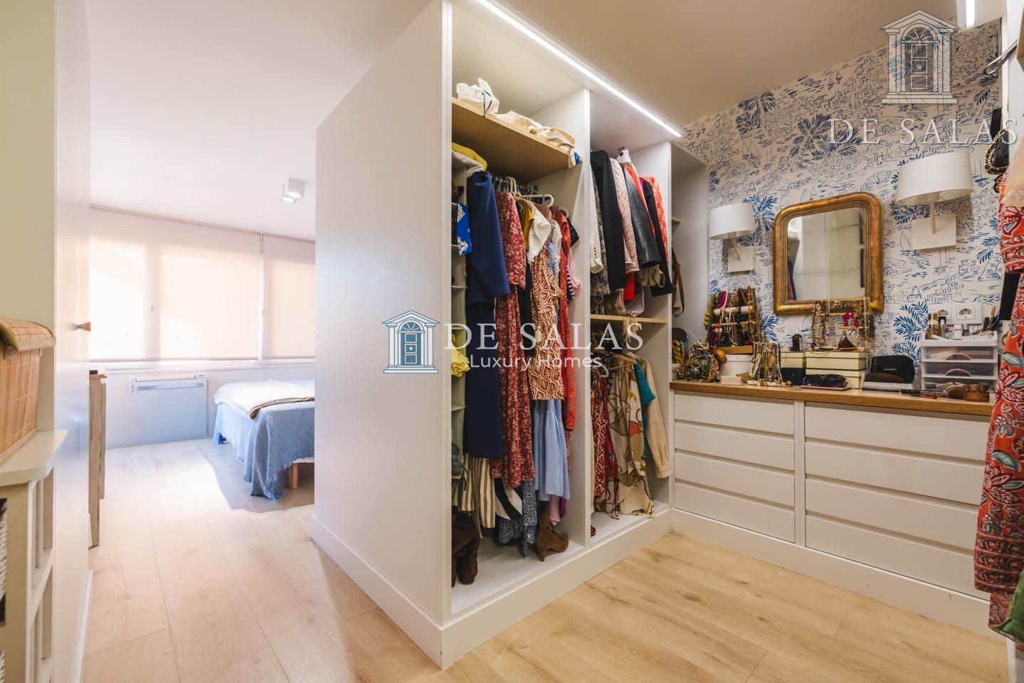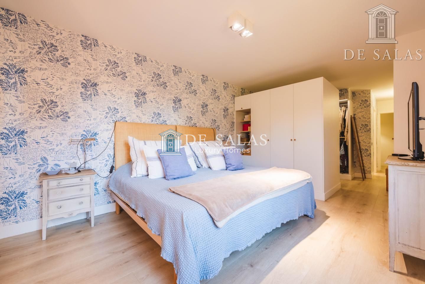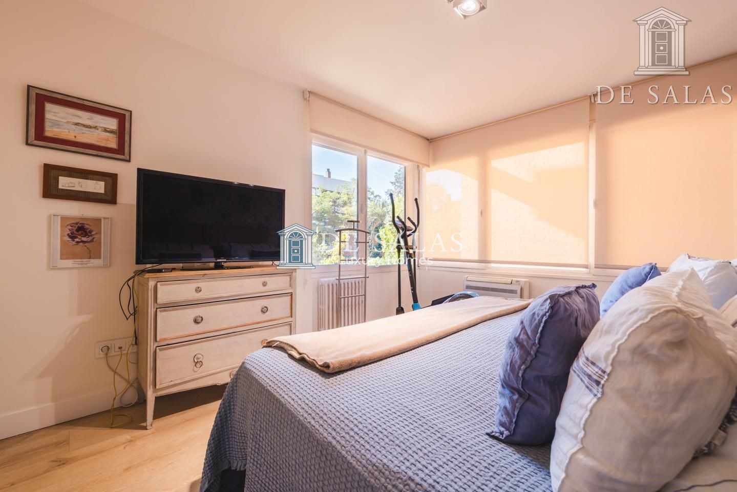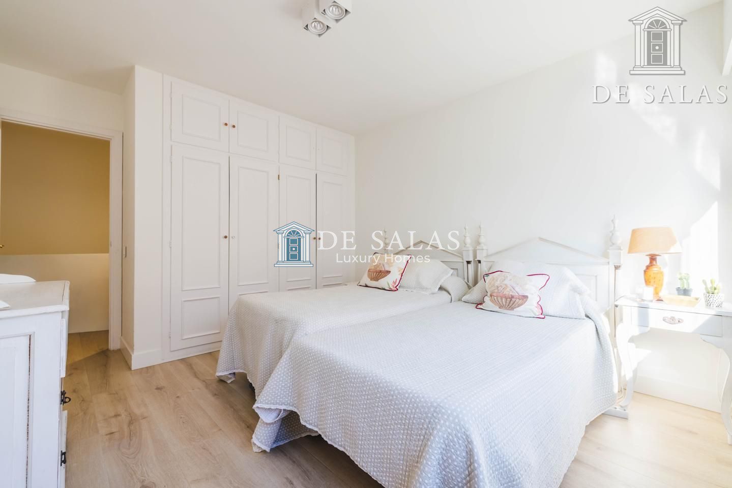 El dormitorio principal cuenta con un vestidor y otra zona de armarios. Al situarse en esquina, la luz inunda la estancia a través de 2 ventanales. El cuarto de baño en suite tiene bañera, lavabo con 2 senos, w.c. y bidé.