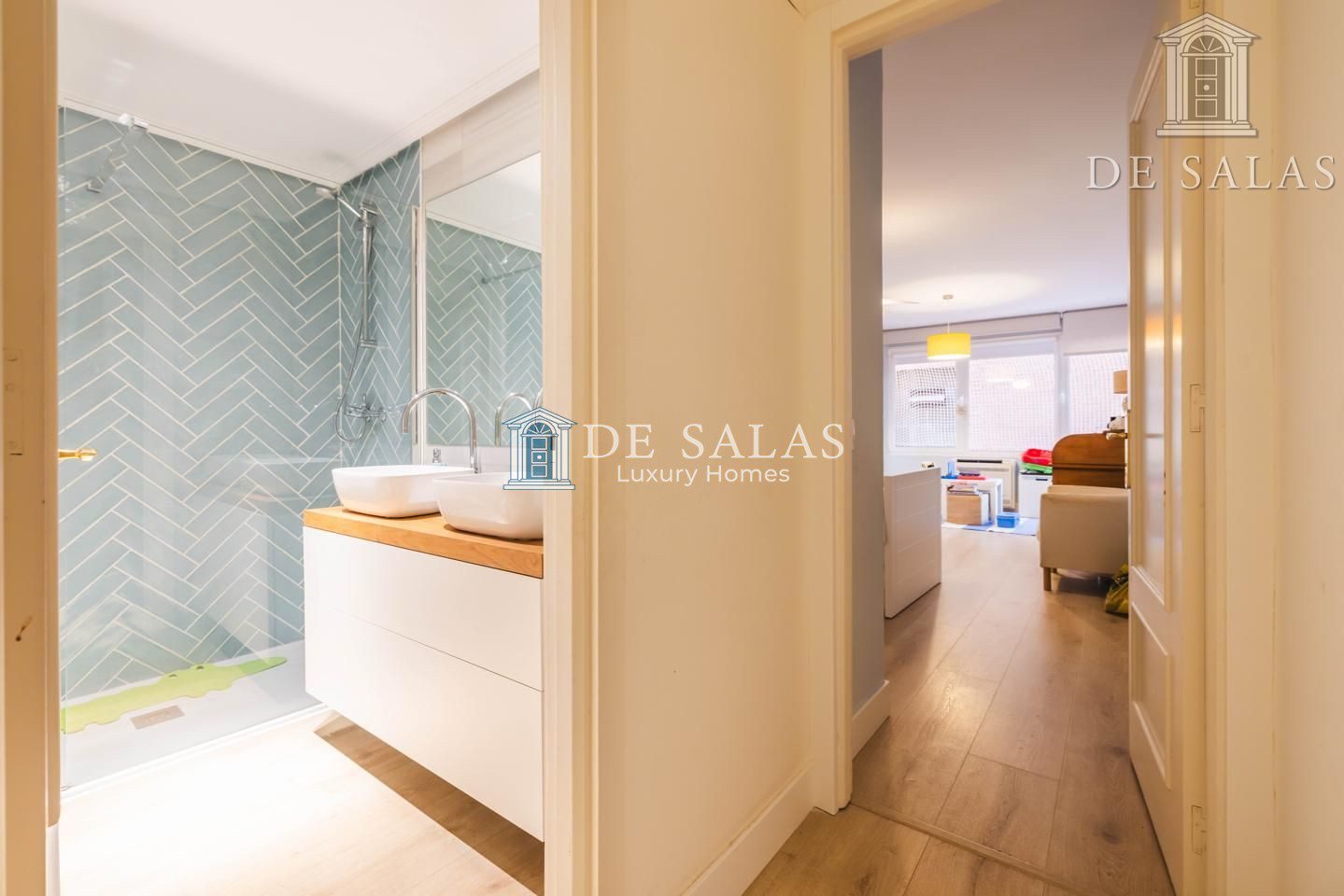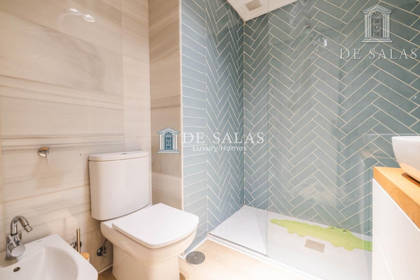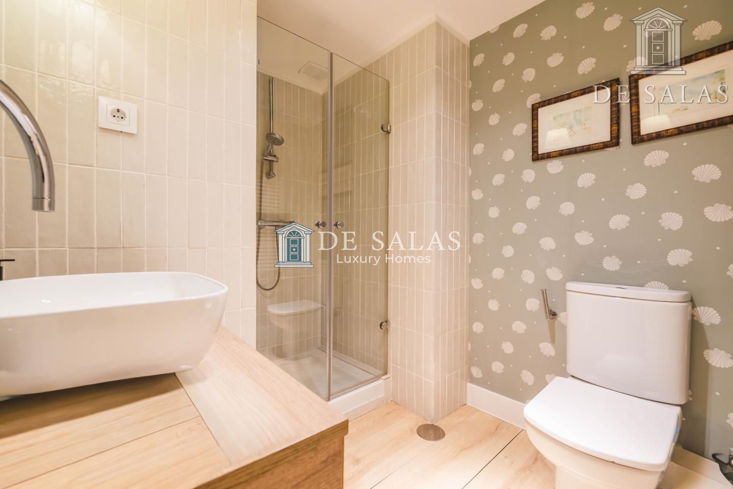 las 3 habitaciones restantes, todas de generosos tamaños, tienen armarios empotrados y comparten un cuarto de baño con ducha, 2 lavabos, w.c. y bidé.