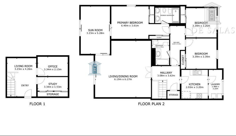 2 habitaciones que pueden ser destinadas a dormitorio, despacho ó lo que se desee.