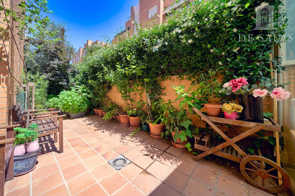 La terraza interior y exterior son espacios perfectos para relajarse y disfrutar del aire libre. La cocina tiene zona de office con acceso al jardín y un cuarto de lavandería, muy práctico y funcional espacio de servicio.