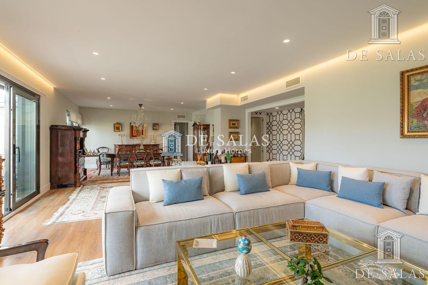 En este lujoso y único piso la luz natural llega a todas sus estancias a través de sus grandes ventanales.