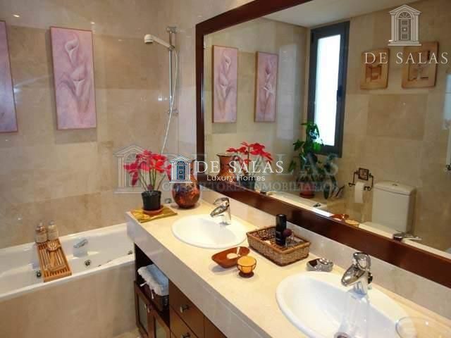 Cuenta con una Habitación Principal en suite, con Baño de mármol completo independiente, más un Vestidor. Tiene otras 2 Habitaciones adicionales amplias, y otro Baño completo (los dos Baños son exteriores y grandes). La vivienda en total dispone de 3 baños con espejos de grandes dimensiones y dos de ellos con muebles bajo encimera hechos a medida.
